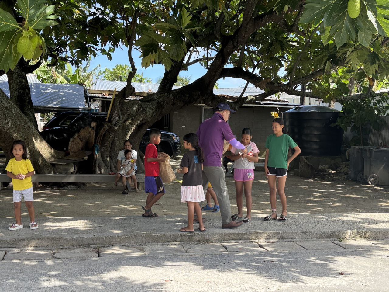 除了孩子們最期待的糖果與餅乾外,技術團還準備了新鮮蔬菜與番茄,在遊行中驚喜發放!讓歡樂多一分、健康也不缺席。