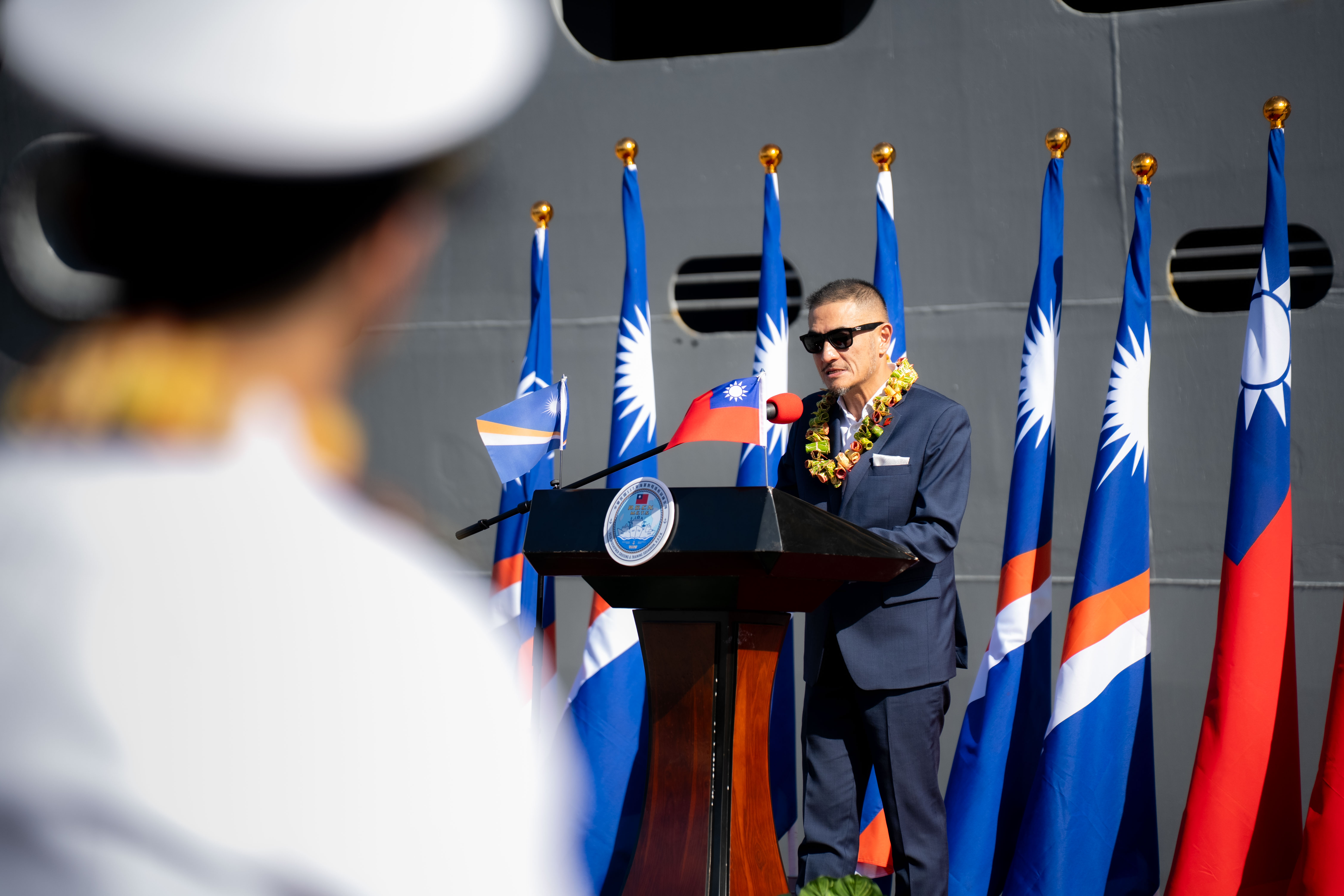 我國海軍敦睦遠航訓練支隊,在支隊長陳明峯少將率領下,於本(115)年3月10日至3月12日訪問馬紹爾群島共和國。今年是敦睦支隊第20次訪問馬國,並選擇馬國作為年度遠航首站,象徵兩國緊密的邦誼。 支隊抵達後,由馬久羅環礁政府舉辦歡迎儀式迎接。訪問期間,陳支隊長率領重要幹部分別拜會馬國海妮(Hilda C. Heine)總統、國會議長瓦西(Brenson Wase)及馬久羅環礁政府代理市長Jina David等政要。海妮總統亦親臨陳支隊長主持的艦上酒會,國會正副議長、酋長、多位內閣部長、多位參議員及僑胞等亦踴躍參與,本館徐蔚民大使皆全程陪同。 敦睦支隊每次訪問馬國均獲當地民眾熱烈迴響,除支隊開放民眾參觀磐石艦台灣特色展區,展現台灣軟、硬實力外,本次支隊亦在教育文化中心(ECC)舉辦棒球用品捐贈儀式,本次捐贈的棒壘球用具如球棒、各式手套、捕手護具、打擊頭盔、棒球及壘包底座等,皆符合國際標準,支隊已連續4年捐贈體育用品予馬國教育部,馬國教育部長Gerald Zackios於儀式特別感謝支隊長期支持,讓馬國學童能享受運動的樂趣。 儀式結束後,海軍官校鼓號樂隊、海軍樂隊、海軍陸戰隊儀隊及海軍陸戰隊莒拳隊更帶來精彩表演,尤其莒拳隊以精湛戰技擊破磚瓦及木板時,驚豔全場,馬國觀眾歡呼聲連連,現場座無虛席。表演結束後,支隊官兵與馬國運動員進行籃球及排球的友誼賽,雙方更因氣氛熱絡主動加賽,展現體育交流能拉近彼此距離。 3月12日早上,敦睦支隊舉行聯合升旗典禮,馬國外交暨貿易部長Kalani Kaneko特別出席致意,並與本館徐蔚民大使致詞歡送支隊,祝福後續航程順利平安。典禮中我國及馬國國旗並肩緩緩升起,展現兩國珍視且深厚的邦誼,典禮結束後,在K外長、馬國參議員David Anitok、外貿部官員、僑胞及館團中心同仁們的熱情歡送下,敦睦支隊啟航前往下一個目的地。