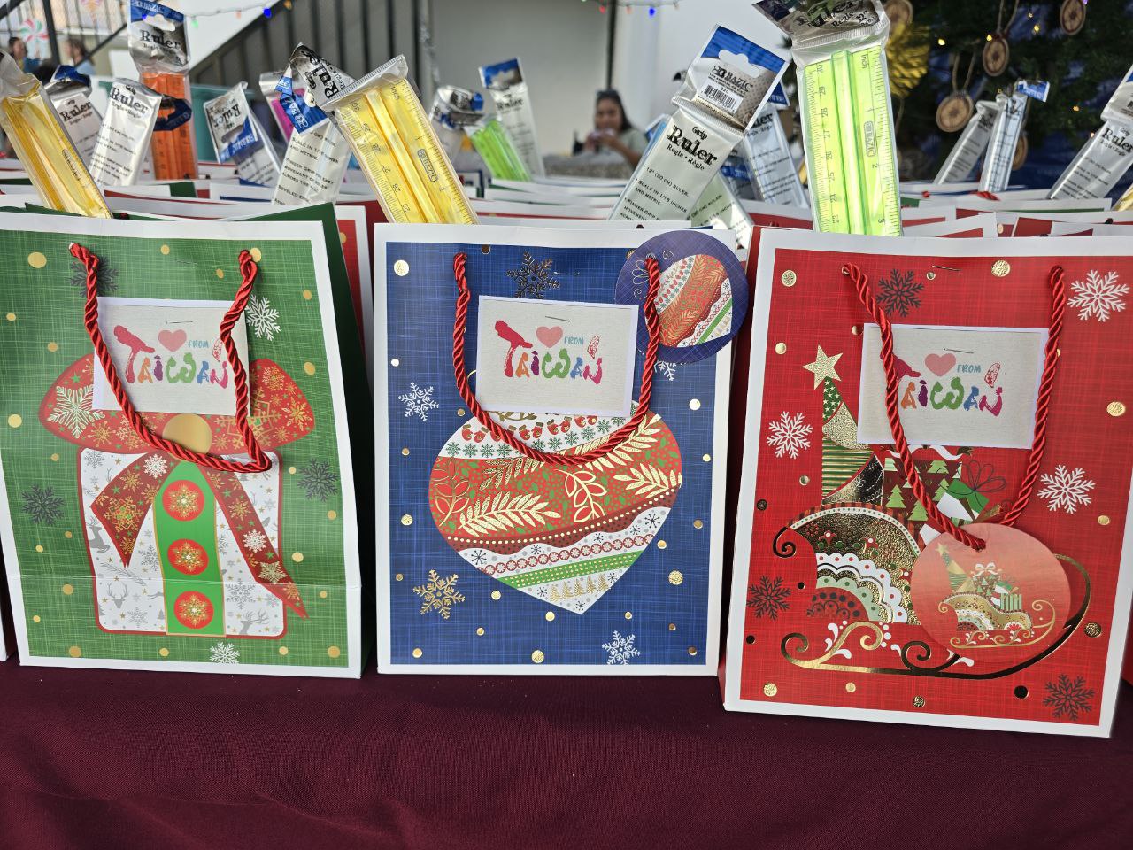 To share the holiday spirit, the Taiwan Embassy prepared stationery gift packs and the Taiwanese traditional game “Chuo-Chuo-Le” (Punch-a-Prize) for the children. Kids who won a quick game of rock–paper–scissors got to punch a hole for a surprise gift—resulting in lots of excitement and laughter throughout the night.
