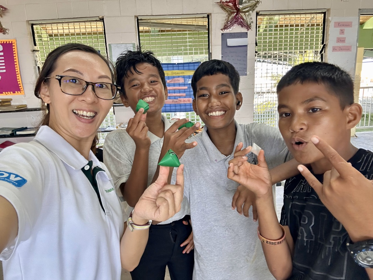 Yes! With the help of some students, I learned the magic spell, “3-3-1”—a way to get everyone quiet and focus. It works just like our “Ai De Gu Li” in Taiwan: once someone shouts “3-3-1,” everyone claps together in rhythm and refocuses.