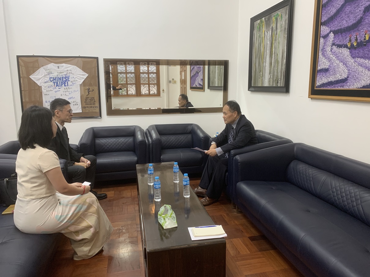 玉山銀行仰光分行林君威行長於本(114)年10月13日拜會本處黃敏境代表,就緬甸當前政經局勢、金融環境及在緬台資企業營運情況等事項,廣泛交換意見。