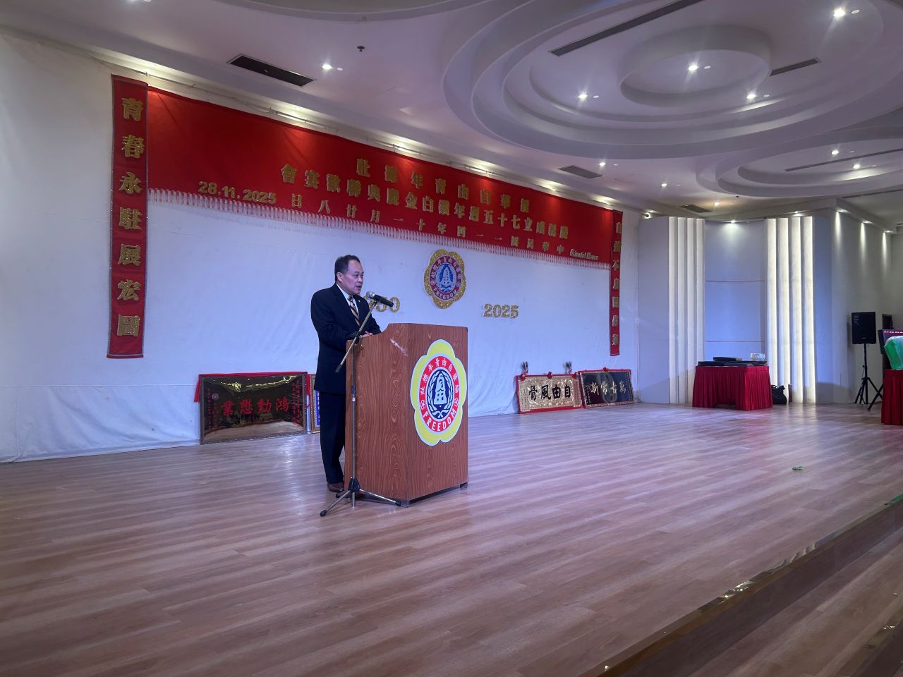 緬華自由青年總社於本(114)年11月28日晚間在仰光Oriental House餐廳舉行75週年社慶聯歡會,尤福臨理事長感謝緬華各僑社代表近500人到場參加,駐緬甸代表處黃敏境代表夫婦與僑務組林冠宏組長亦前往祝賀。