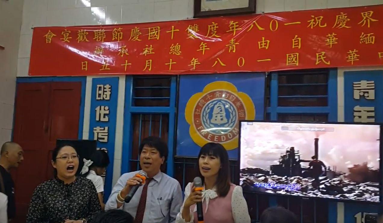 聯歡宴會在全體與會人士齊唱中華民國國歌中揭開序曲,緬華自由青年總社理事長尤福臨代表緬華各界僑團恭祝中華民國國泰民安。