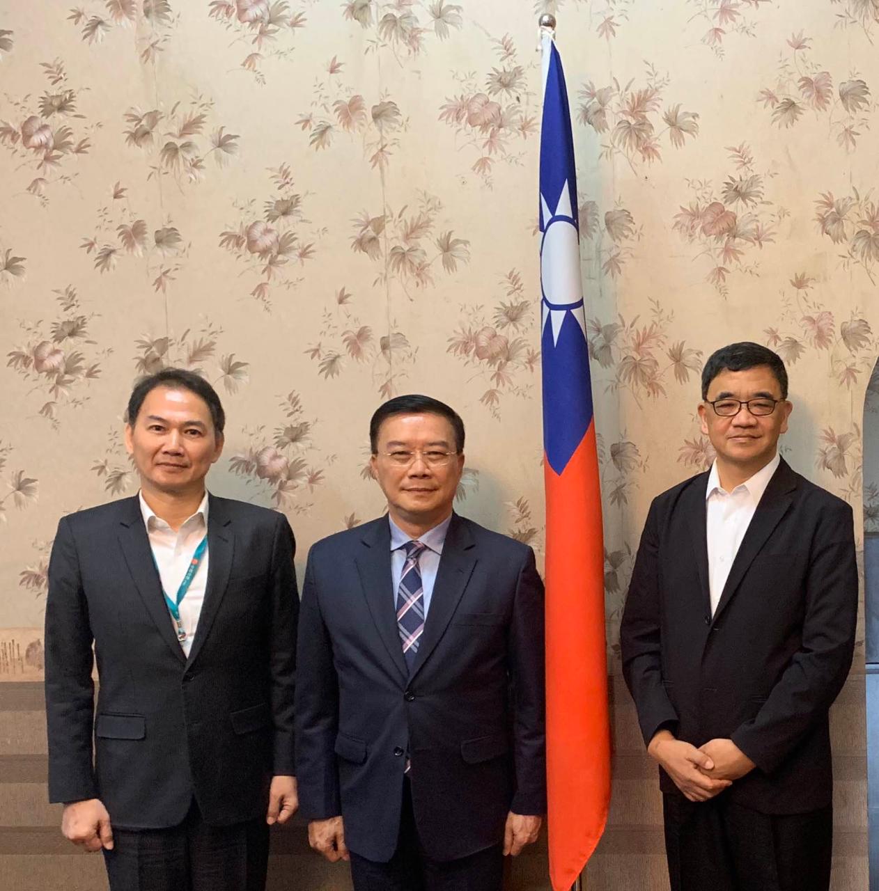 駐緬甸代表處李朝成代表(中)偕經濟組蕭俊組長(右)與中國信託商業銀行仰光代表人辦事處劉大隆首席代表(左)