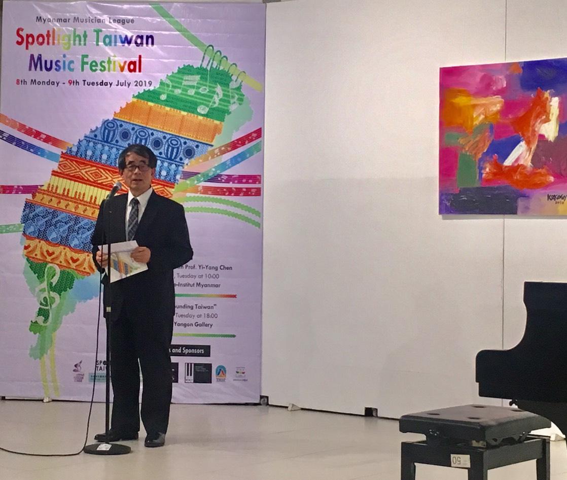 緬甸音樂家聯盟(Myanmar Musician League)音樂節活動邁入第三屆,今年首度由臺灣文化部透過駐緬甸經濟文化辦事處贊助。音樂節除於7月1日舉辦例行活動外,並於8、9日在仰光藝廊舉辦臺灣書院文化光點活動,當日邀請臺北市友善城市發展協會合唱團、501 弦樂團成員、臺灣歌手何芸娜、鋼琴教授陳奕陽前來仰光演出,駐緬甸代表張俊福及副參事張水庸蒞場,活動演奏及吟唱臺灣特色歌謠,融合緬甸傳統樂器演奏,展現特殊中南半島音樂風情。