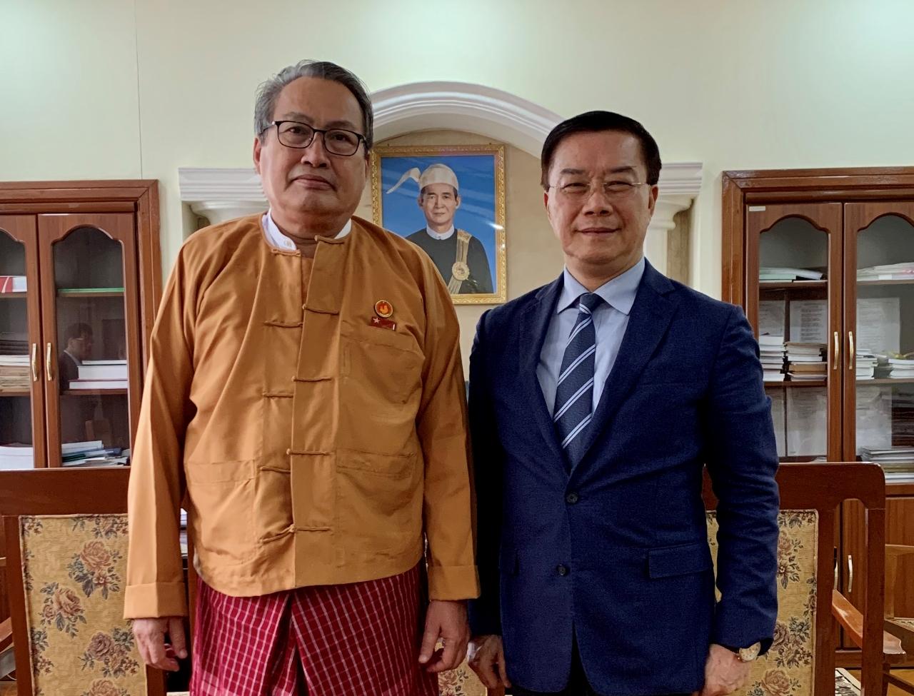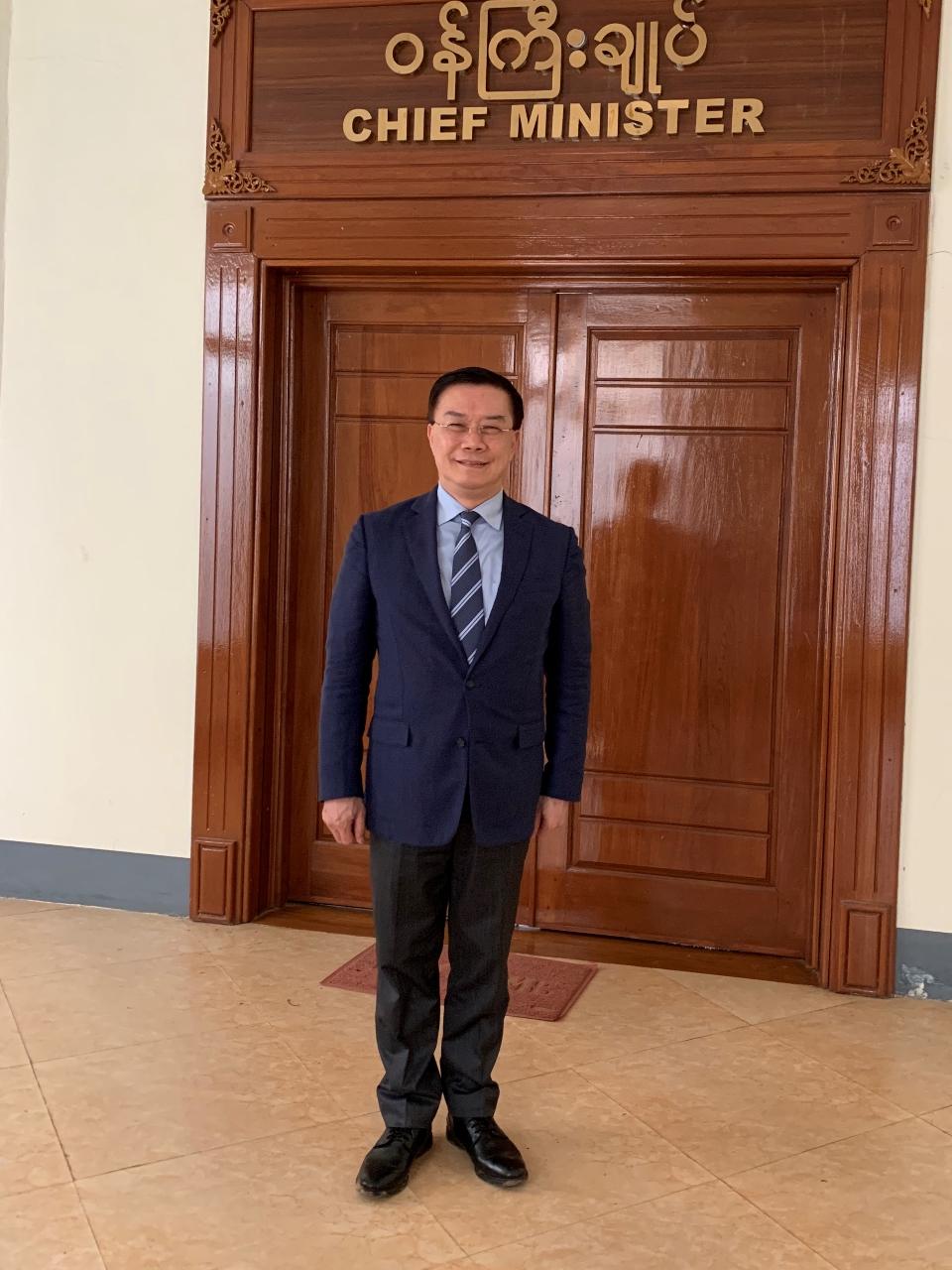 駐緬甸代表處李朝成代表偕林世政秘書2月24日下午拜會孟邦(Mon State)省長(Chief Minister) Dr. Aye Zan洽談工業區用地、農業、漁業、技職教育等投資及合作機會,為臺商爭取更多新南向商機。