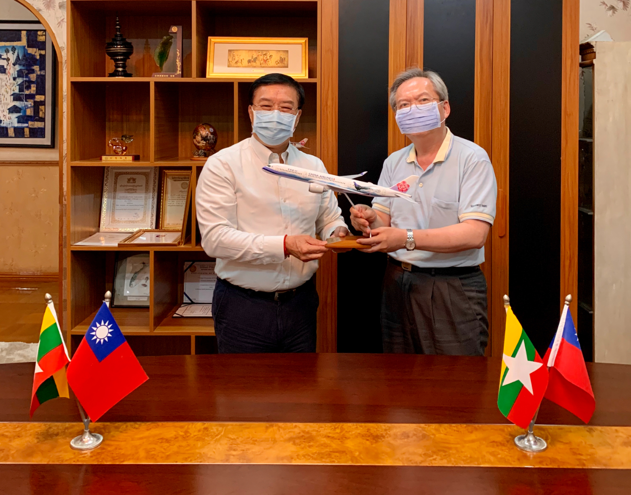 駐緬甸代表處李朝成代表(左)與中華航空公司緬甸分公司林智義總經理(右)合影