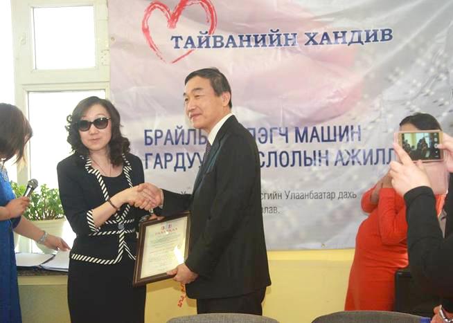 (2月24日,UB POST報導) 臺灣政府於本週三(2月22日)捐贈一部點字印表機給「蒙古全國視障協會」(MNFB),協助蒙古視障與弱視人士的學習。