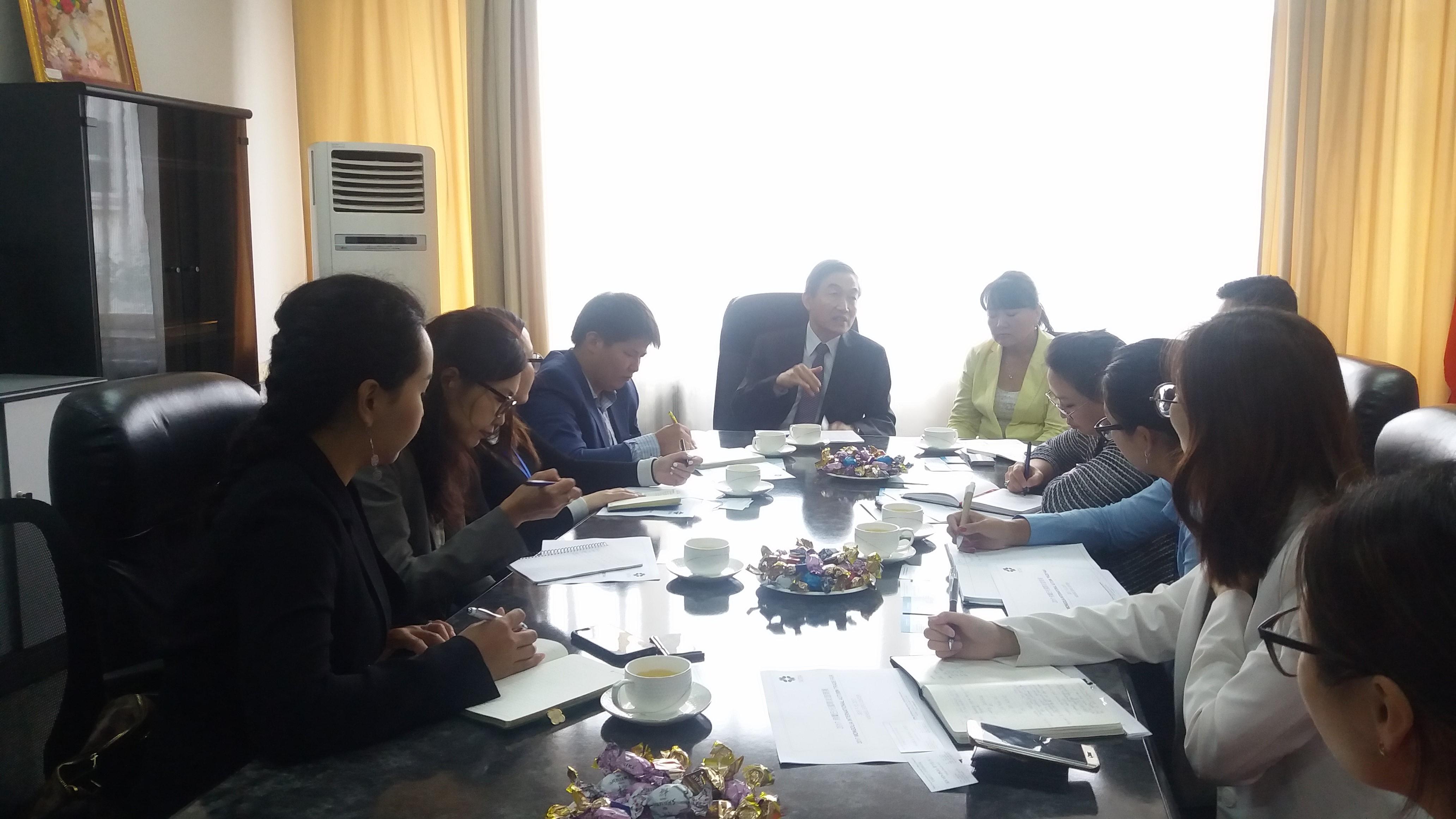 本處黃國榮代表於8月17日上午邀請蒙古Golomt Bank、Trade and Development Bank of Mongolia、Khan Bank及State Bank四家商業銀行座談,說明台灣輸出入銀行之最新轉融資規定。