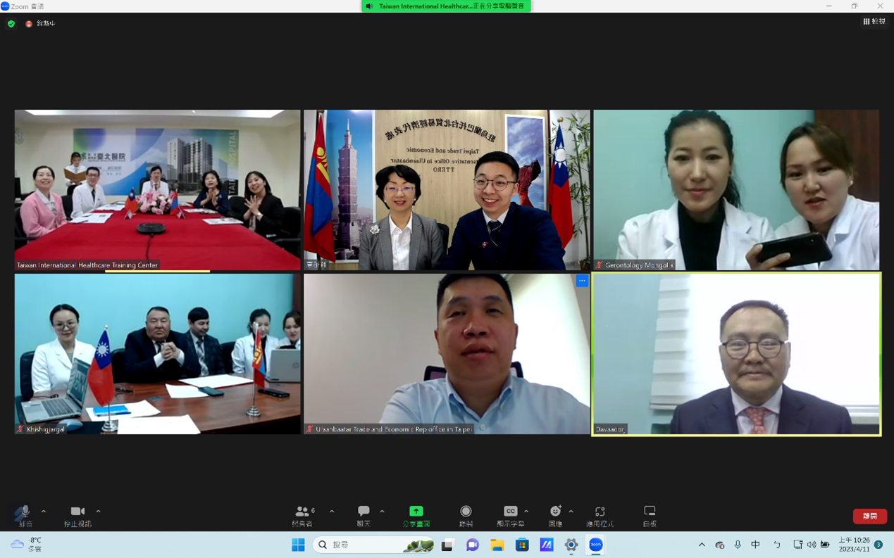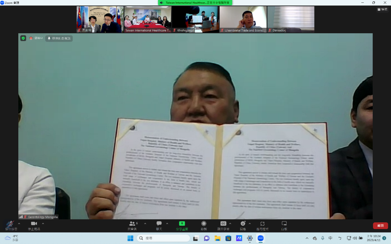 Монгол Улсын геронтологийн үндэсний төв болон Тайваний эрүүл мэнд халамжийн яамны харьяа Тайпэй хотын эмнэлэг нь 2023 оны 4-р сарын 11-ний өдөр алсын зайнаас цахим хэлбэрээр хамтран ажиллах санамж бичигт гарын үсэг зурлаа. Энэ нь цар тахал дэгдсэний дараах Тайваниас Монгол Улсад суугаа төлөөлөгчийн газрын дэмжлэгтэйгээр Тайваний эрүүл мэнд халамжийн яамны харьяа Тайпэй хотын эмнэлэг байгуулж буй анхны хамтын ажиллагааны санамж бичиг болж байгаа тул ихээхэн ач холбогдолтой юм.