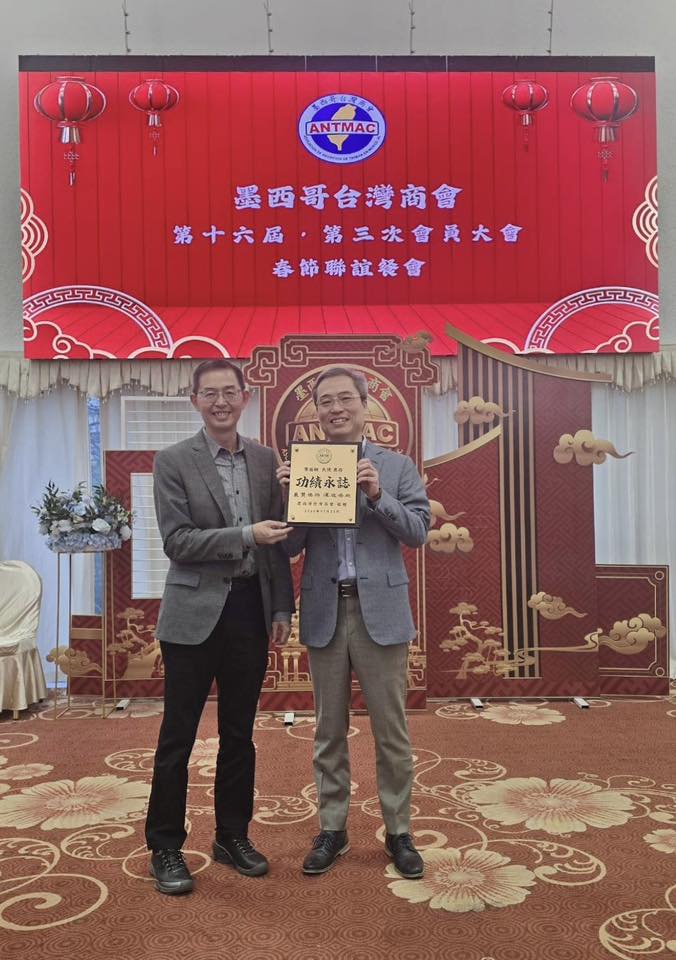 活動中,台灣商會梁會長原精特別頒贈李大使感謝狀,以表彰其任內對促進台墨交流及關懷僑界的貢獻。面對複雜多變的國際情勢,台灣過去一年持續強化產業競爭力、推動科技創新與產業升級,並深化與理念相近民主夥伴的合作,穩健拓展國際空間;相關成果也有賴全球僑胞長期的支持與貢獻。