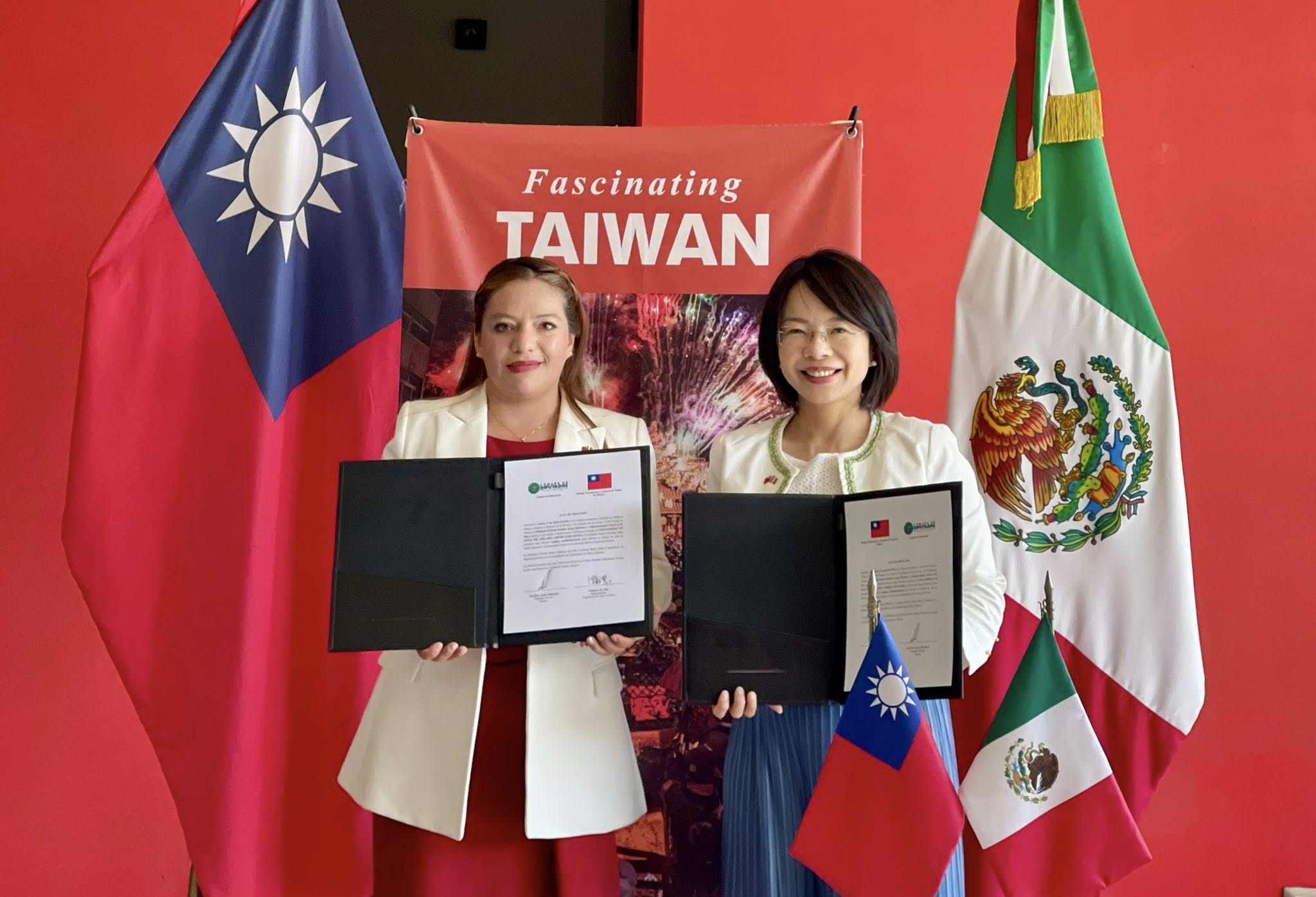 徐代表韶慧與墨西哥 聯邦眾議員Josefina Anaya Martínez簽署我國政府支持A議員「捐贈墨西哥州 弱勢族群身障輔具 計畫」合作紀事錄。