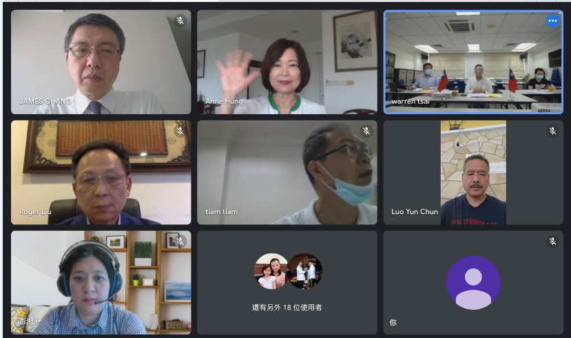洪大使最後祝福臺商朋友身體健康,一同平順度過疫情嚴峻的時刻。線上出席人員有該總會林總會長永昌、李副總會長鴻隆、康副總會長耀忠及全國理事、幹部等約31人。