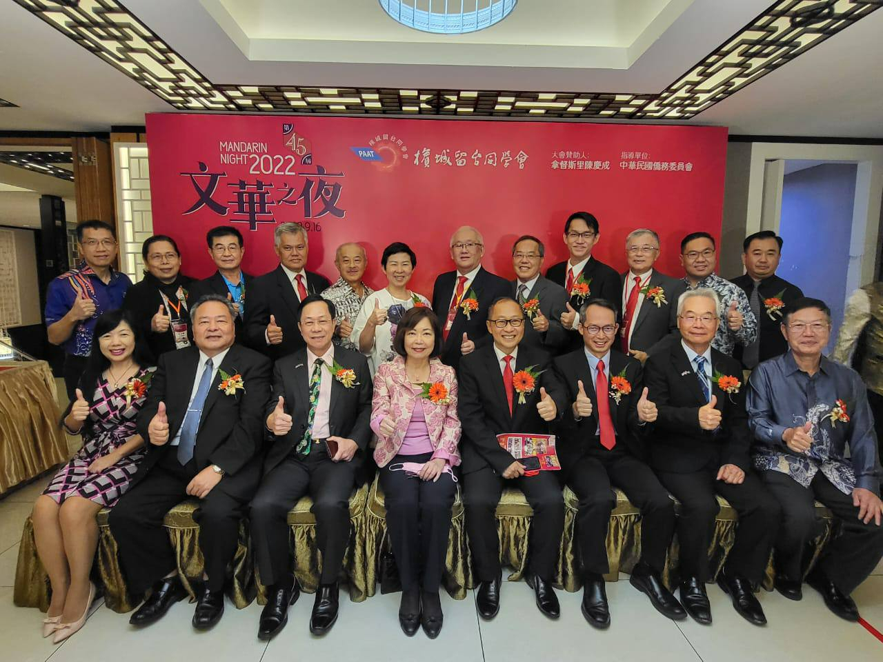 駐馬來西亞臺北經濟文化辦事處洪大使慧珠於本(111)年9月16日晚間出席檳城留臺同學會在貴賓樓大酒家辦理之「2022年第45屆文華之夜」活動,由檳城留臺同學會林會長慶耀主持,活動近600人參加,場面盛大氣氛熱絡。