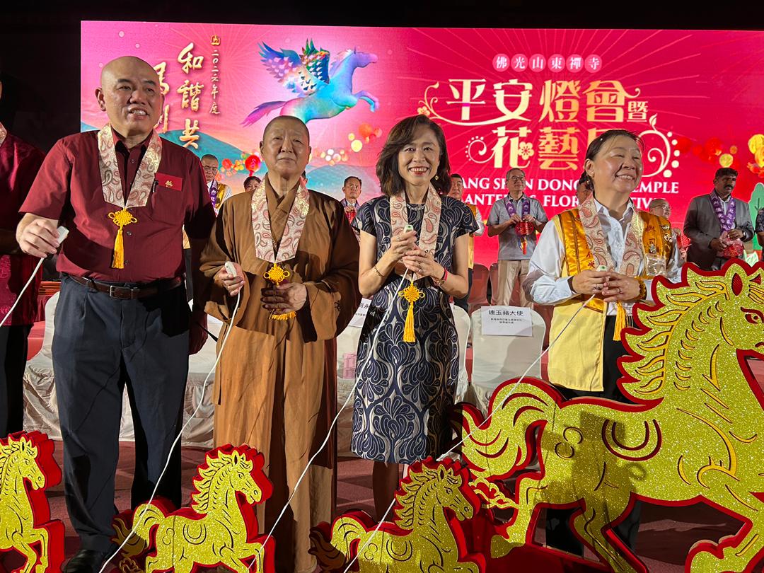 馬來西亞佛光山東禪寺平安燈會啟燈儀式於2月14日晚間熱鬧登場,本處連玉蘋大使應邀出席,與佛光山新馬泰印教區總住持覺誠法師及各界貴賓共同點亮新春祝福。