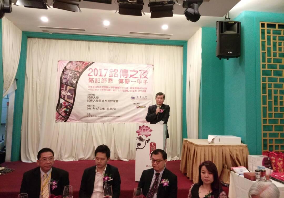 駐馬來西亞代表處尹公使新垣於2016年4月22日晚上偕同僑務組黃組長克忠、林秘書素珠及教育組朱組長多銘、白秘書博文,前往八打靈參加由銘傳大學馬來西亞校友會舉辦之「2017年銘傳之夜」,有銘傳大學劉國偉副校長及夫人、銘傳大學馬來西亞校友會馬翊芠會長、留臺聯總洪進興署理總會長及夫人、馬來西亞教育部副部長劉特別事務官孋純、韓江學院湯副董事長建華、雙威大學潘副校長永忠及校友會理事、會員眷屬等約180人參加。