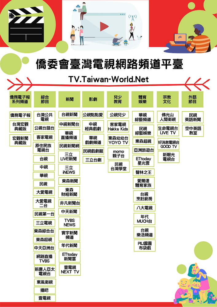 在數位新媒體時代下,為提供全球僑胞收看臺灣優良影視節目之管道,提升海外民眾對臺灣文化與影視產業之瞭解,僑務委員會特規劃設置「臺灣電視網路頻道平臺」 ,彙整時下熱門影音平台YouTube上優質臺灣影視節目,以TV.Taiwan-World.Net 為單一平臺入口,提供海外僑胞本會精選節目清單,期盼透過我國優良影視產業之文化軟實力,在網際網絡連結下,串連臺灣與世界,進而提升臺灣在國際社會之能見度。