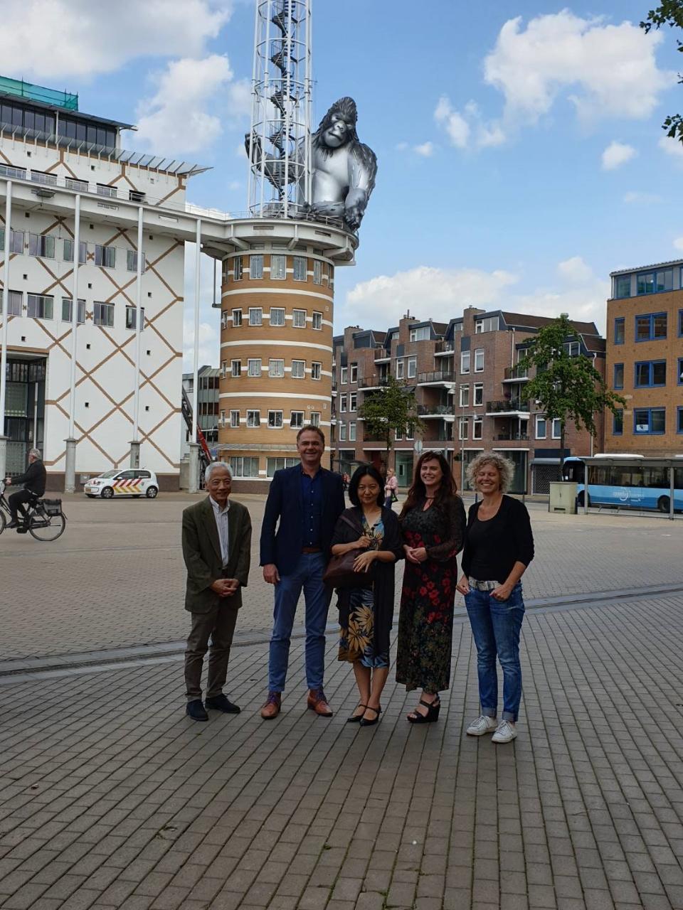 駐荷蘭臺北代表處陳欣新代表赴荷蘭Apendoorn巿廣場參訪金剛猩猩「寶寶」造型藝術。(2019-08-21, Apendoorn)