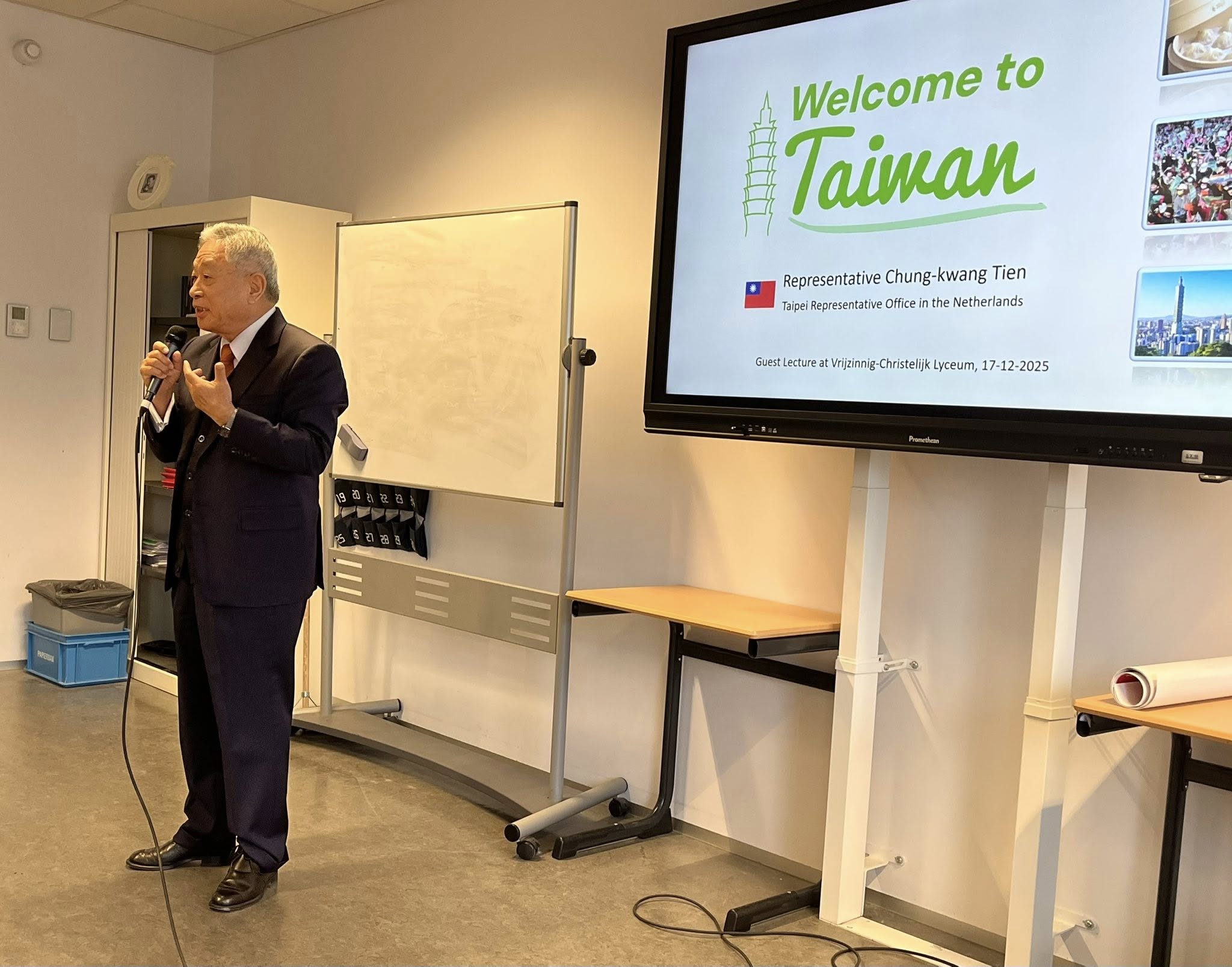 Last Wednesday, Representative Chung-kwang Tien was pleased to speak at the Vrijzinnig Christelijk Lyceum (VCL) in The Hague, introducing students to Taiwan’s national profile, Taiwan–Netherlands relations, cross-strait issues, and the work of our Representative Office.