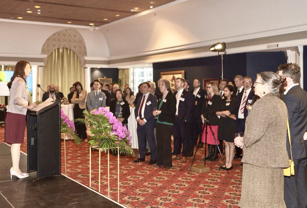 歐江安大使與紐西蘭11位國會議員、首都市長等3位市長、企業界領袖等貴賓共同舉杯祝賀國慶 歐江安大使在國慶酒會上致詞 紐西蘭政、學、企業、智庫等領域百位菁英出席我國慶酒會