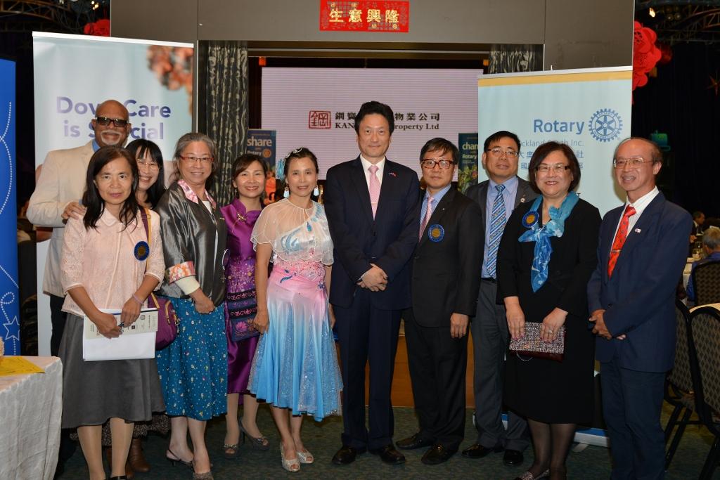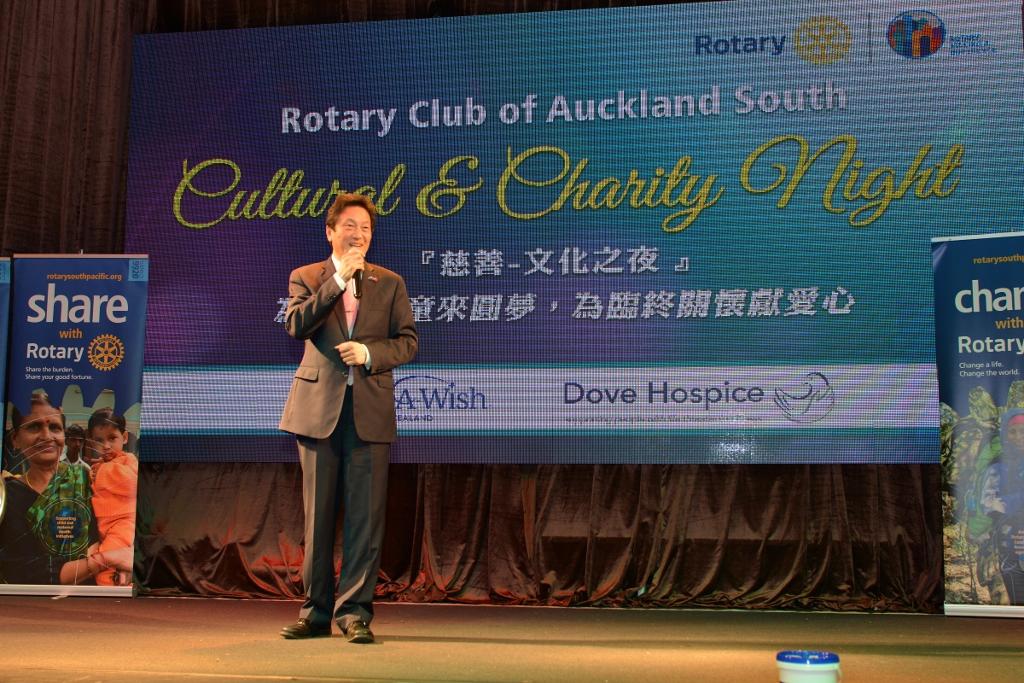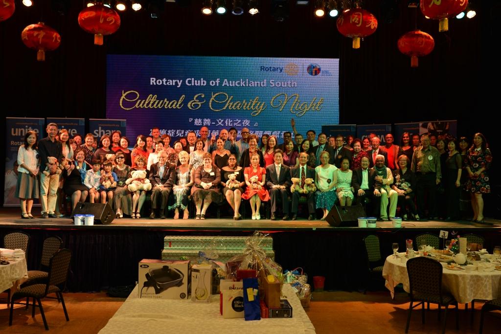 大奧克蘭扶輪社(Rotary Club of Auckland South) 3月10日晚間假皇庭大酒樓舉辦「大奧克蘭扶輪社文化慈善之夜」(CULTURAL & CHARITY NIGHT),駐奧克蘭臺北經濟文化辦事處處長周中興偕僑務秘書劉敏如應邀出席;該社社長邴玉玲、前社長易立仁、蔡巧雲、鍾依霖、紐國國際扶輪社9920區總監Malini Raghwan、Dove Hospice總裁Julie McCarthy、喜願兒協會(Make a Wish )Debbie Hoskins及John Hall、友社代表、僑務委員楊貴森、威靈頓僑務顧問陳天福夫婦等中外嘉賓近200人與會。
