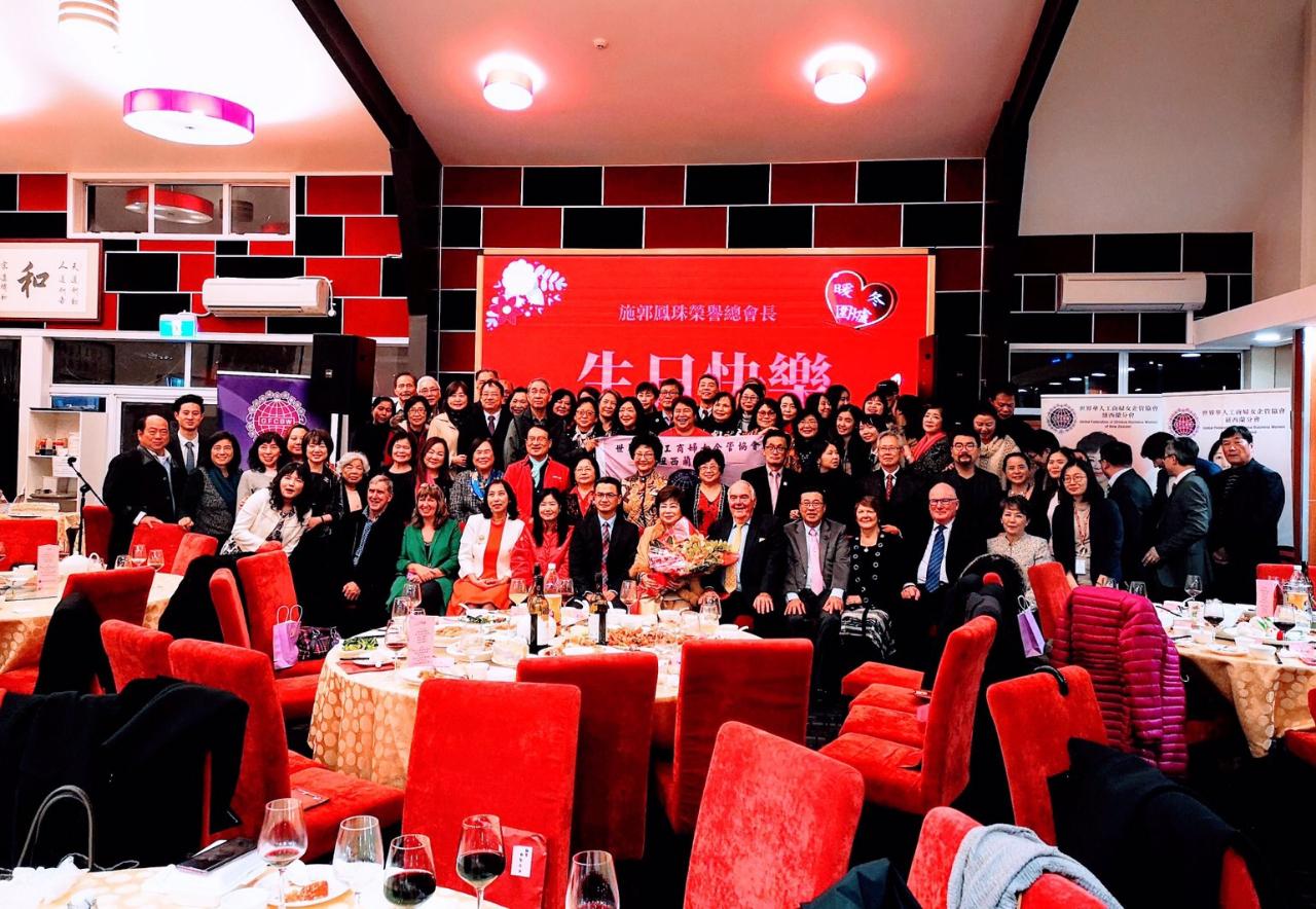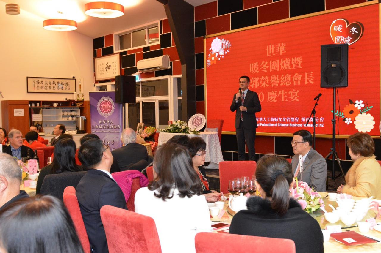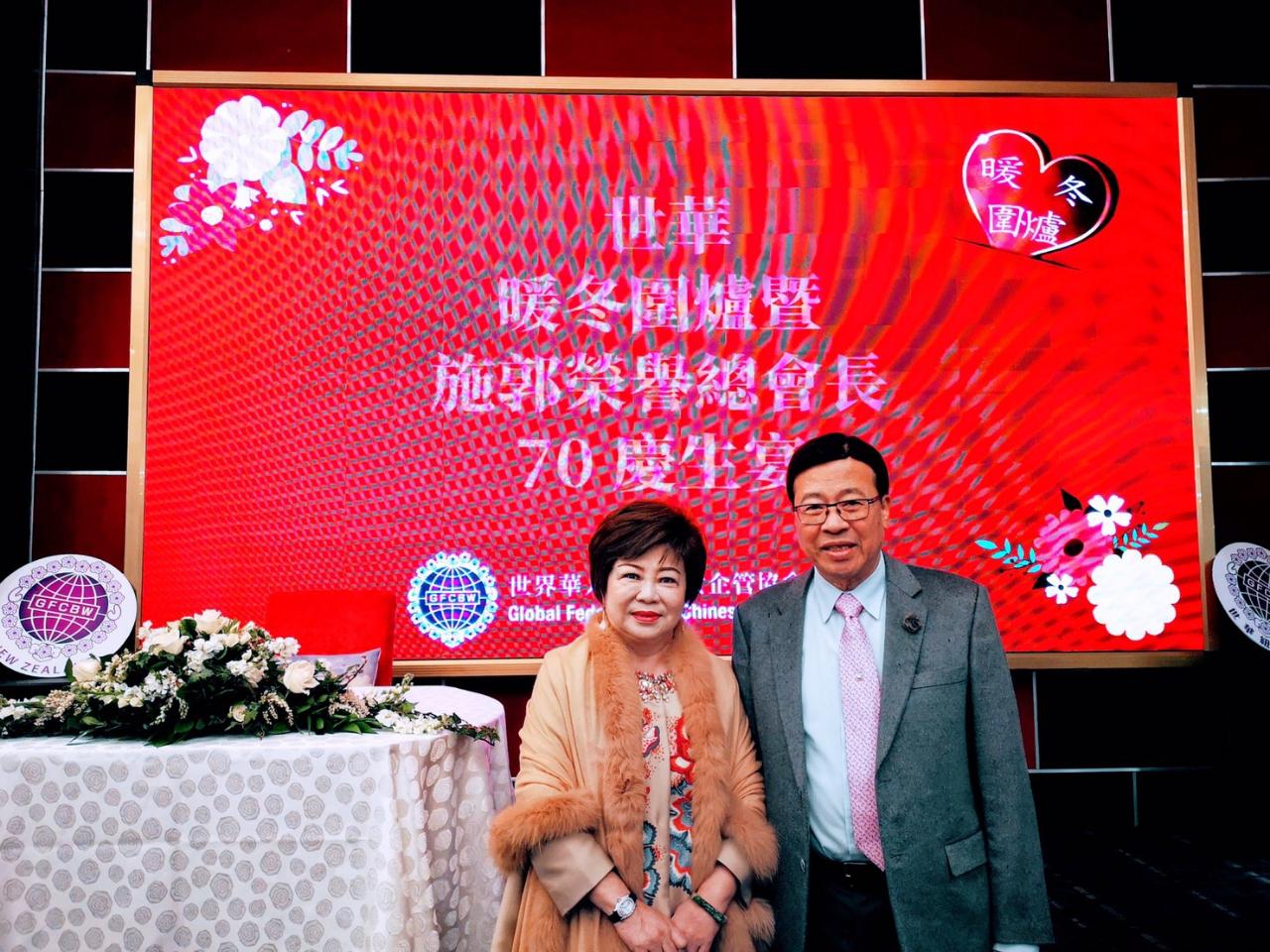 劉永健處長夫婦8月20日晚間應邀出席世界華人工商婦女企管協會紐西蘭分會舉辦之暖冬圍爐暨世華榮譽總會長施郭鳳珠僑務諮詢委員70歲慶生宴。
