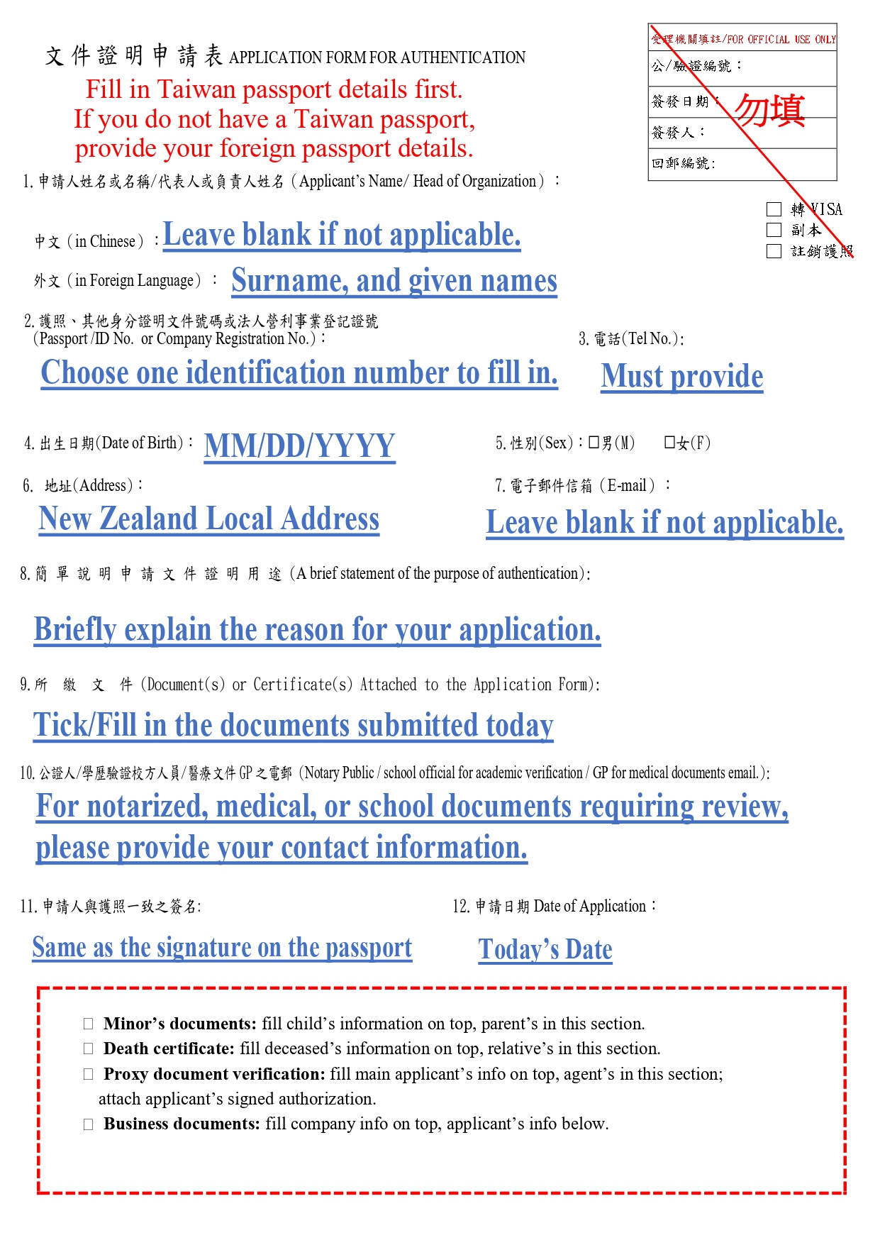 DOWNLOAD (Filled out in Chinese if you hold a R.O.C passport)