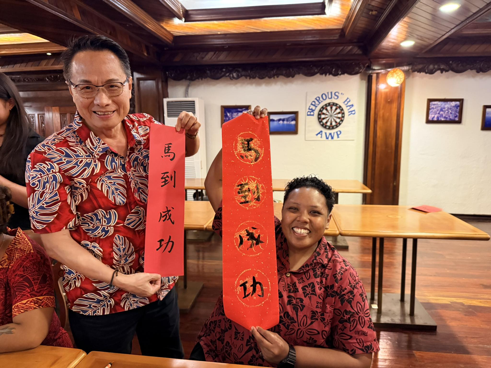 本館非常高興於春節期間舉辦新春晚宴,與新任帛琉臺灣商會理監事團隊及帛琉國務部夥伴齊聚一堂,共同歡慶佳節。在溫馨而熱鬧的氛圍中,大家共享美食、交流情誼,也再次彰顯臺帛之間深厚且歷久彌新的邦誼。