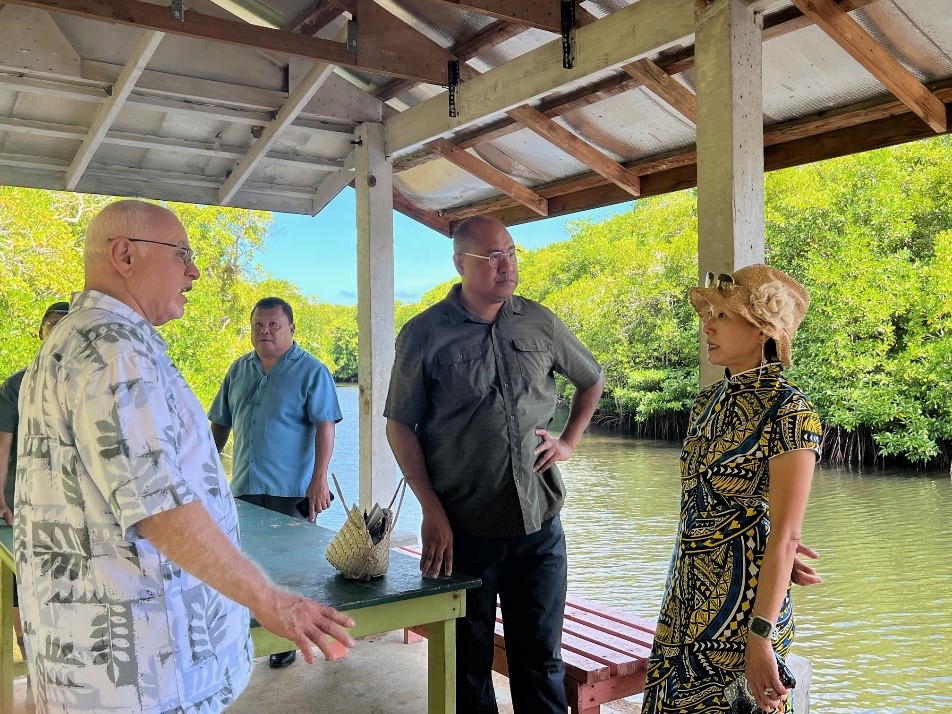 Ambassador Lee of ROC (Taiwan) Embassy was invited by Minister Ngirai Tmetuchl of MHRCTD and Chief Dr. Victor Yano to visit one of the six states’ tourism improvement and promotion projects funded under Taiwan’s Post-COVID Tourism Promotion grants. Witnessing the progress achieved through the funding, she expressed enthusiasm for reviving tourism activities to pre-pandemic levels. The ROC (Taiwan) Government allocated funds to the Palauan government, with Airai State showing solid progress as a promising start.