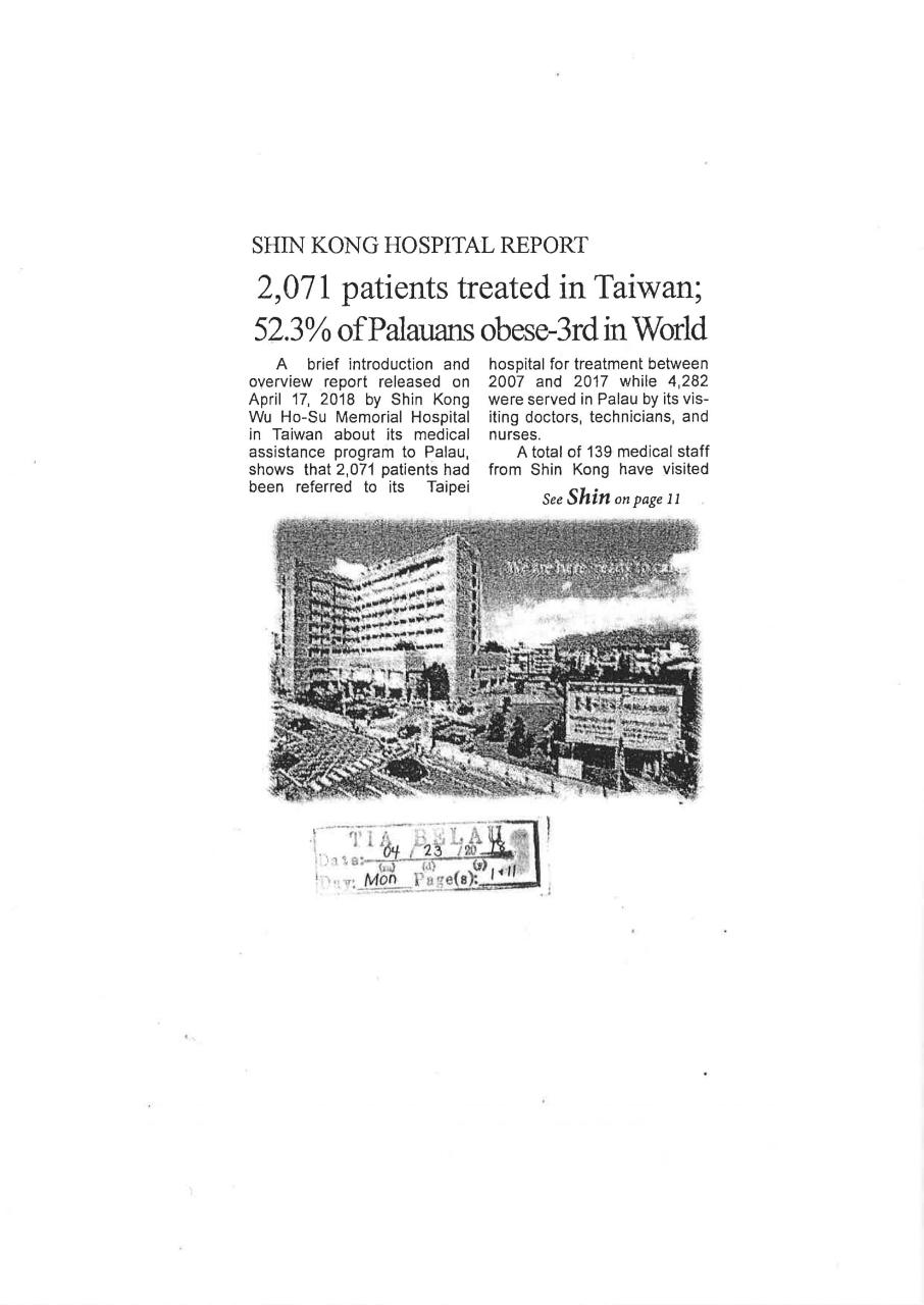 SHIN KONG HOSPITAL REPORT 2,071 patients treat... - Embassy of the Republic of China (Taiwan) in the Republic of Palau 駐帛琉共和國大使館 ::: Skip to main content