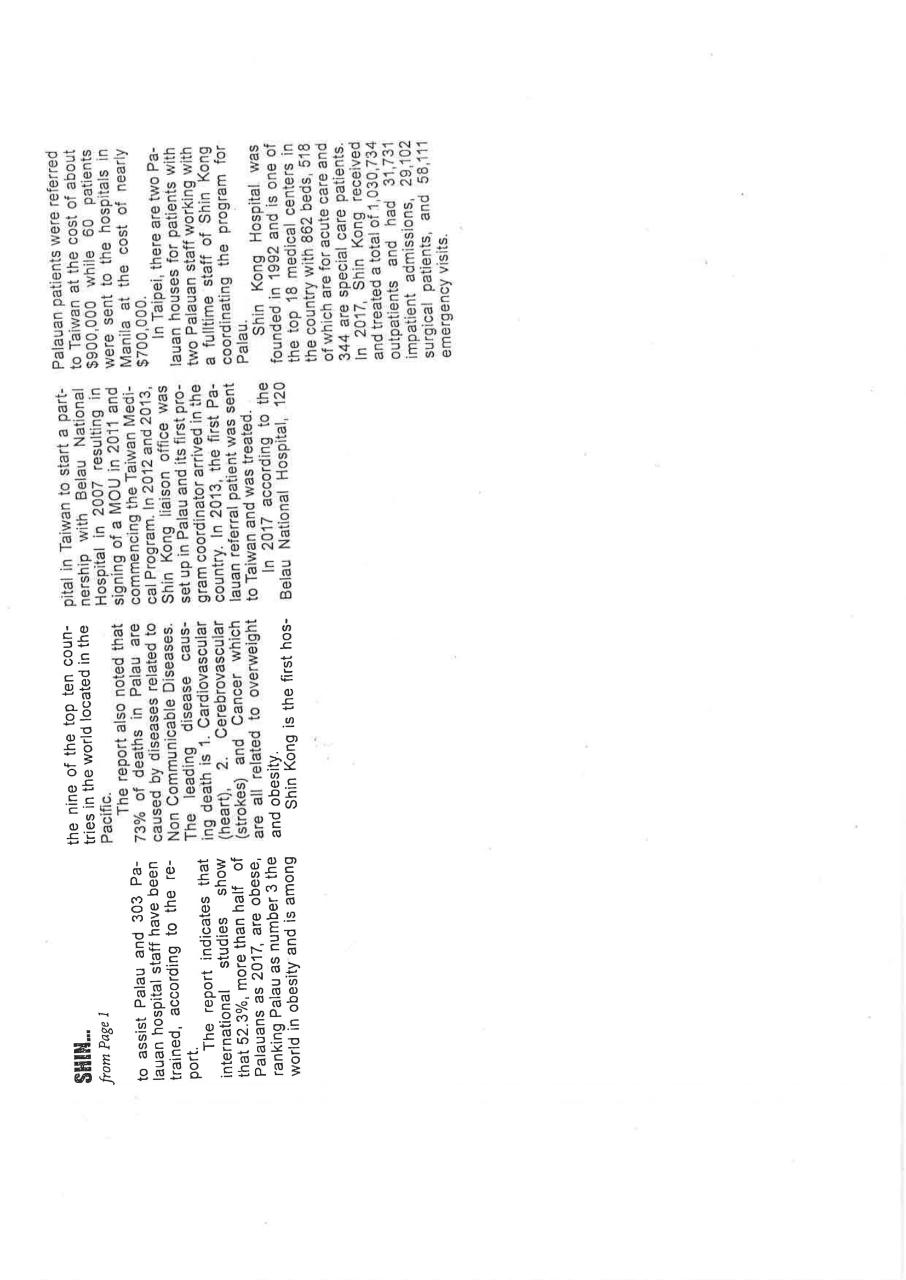 SHIN KONG HOSPITAL REPORT 2,071 patients treated in Taiwan; 52.3% of Palauans obese-3rd in World
