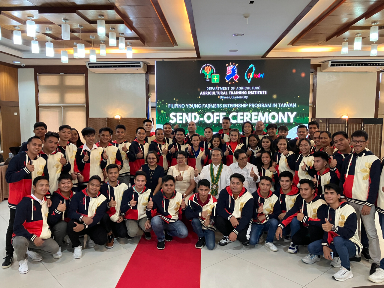 Representative Wallace Chow posed for a photo with 49 qualified young farmers at the Send-Off Ceremony of the Filipino Young Farmers Internship Program in Taiwan (FYFIPT) Batch 3. (2023-08-08).