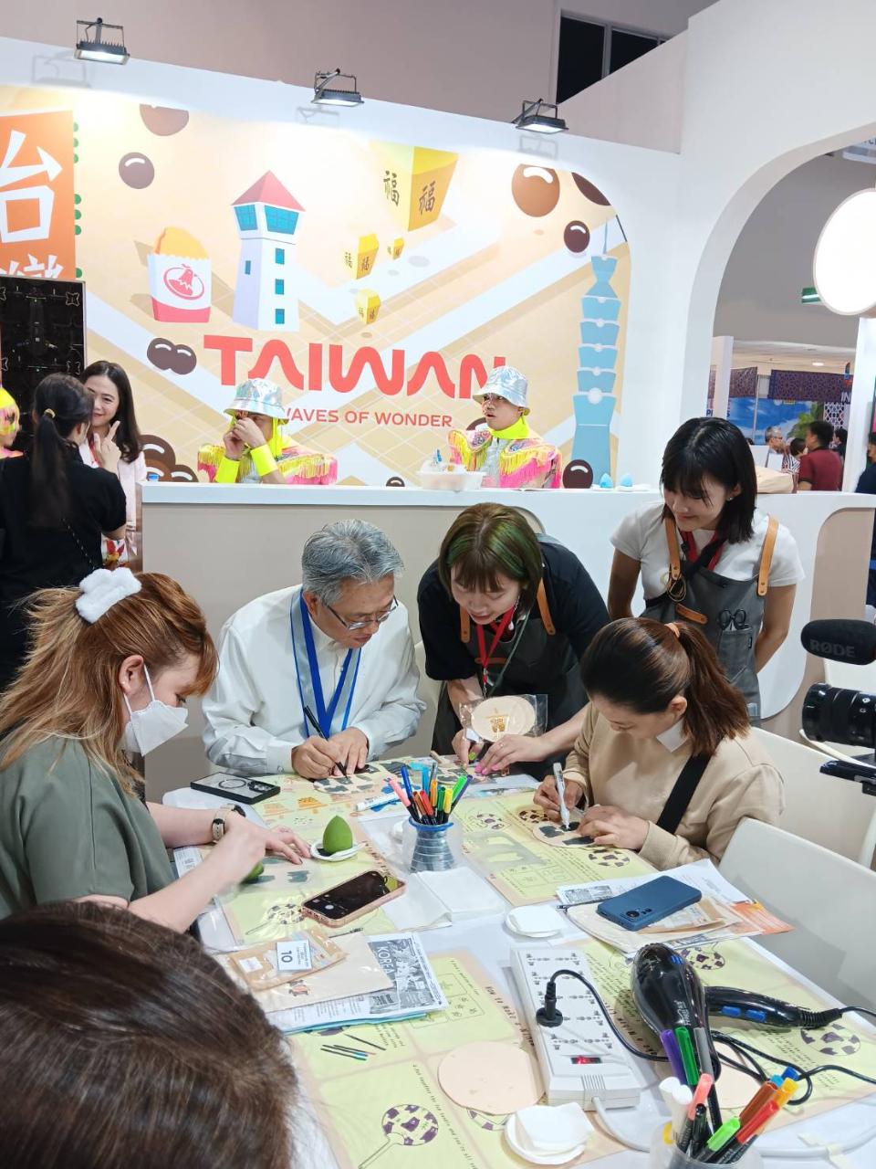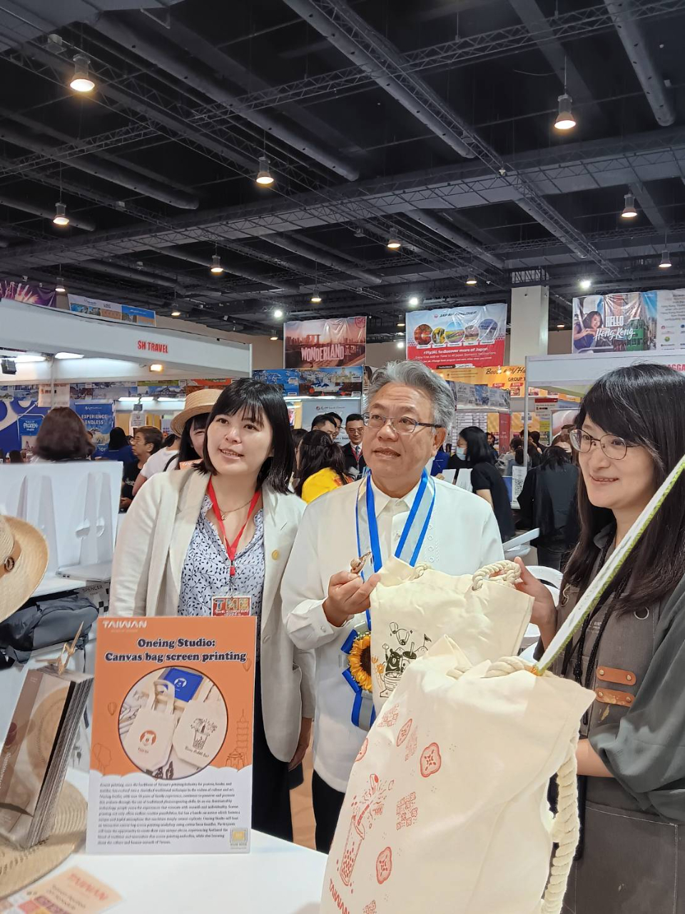 During the exhibition from 12 to 14 July, the Taiwan Pavilion invited Taiwan tourism ambassadors Gabbi Garcia and Khalil Ramos, and influencer Angel Dei as special guests to share their exciting experiences in Taiwan with the audience. Moreover, there were a series of captivating performances and interactive games in the Taiwan Pavilion to showcase Taiwan’s vibrant culture and hands-on creativity experiences. The Hoyi Dance Group, known for blending traditional Taiwanese culture with street dance and technology, presented "Fluorescent Guan Jian Shou (The chief general god)" show with T-POP. Other activities included screen printing with Taiwanese-themed designs, bubble tea tasting, rush wovening, traditional silk fan painting, Taiwanese lanterns making, and a fun Taiwan travel quiz.