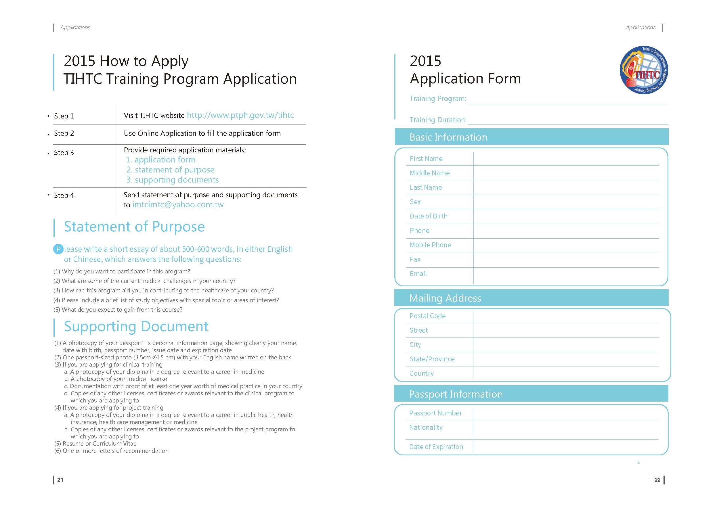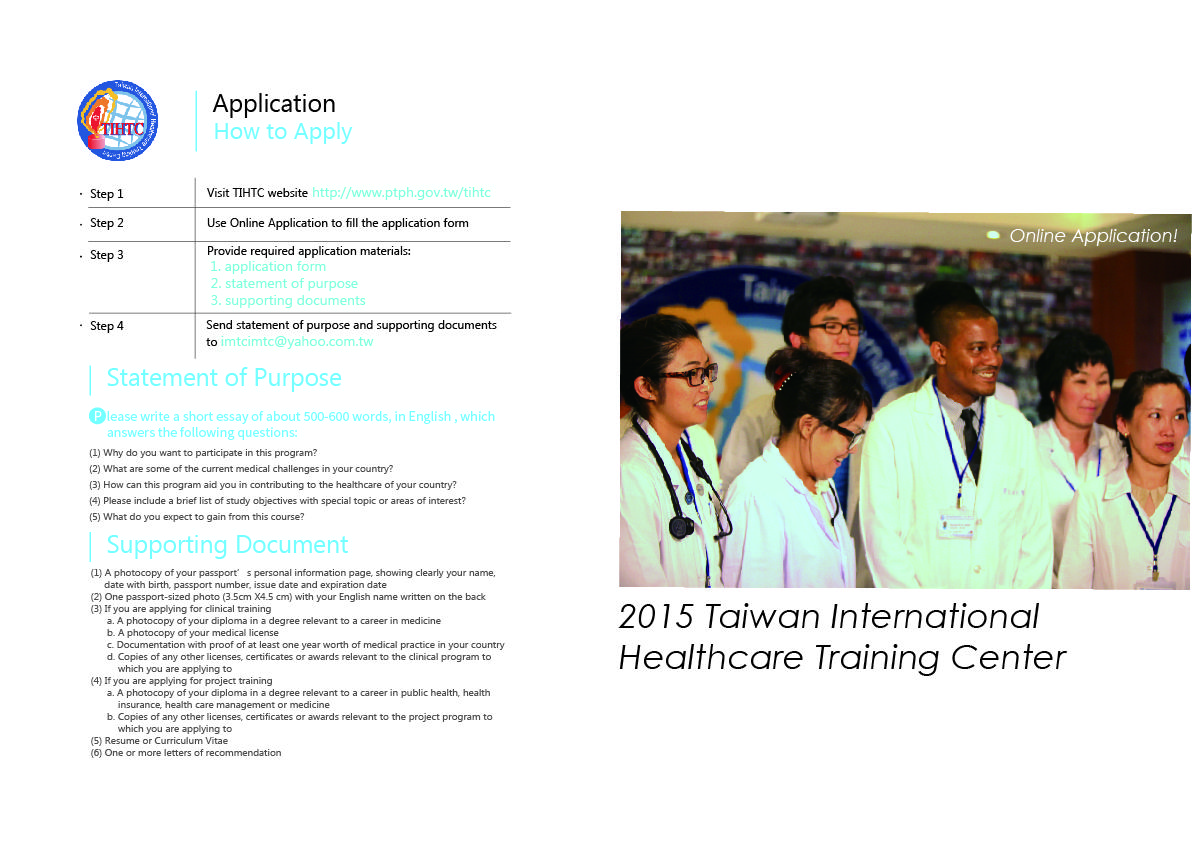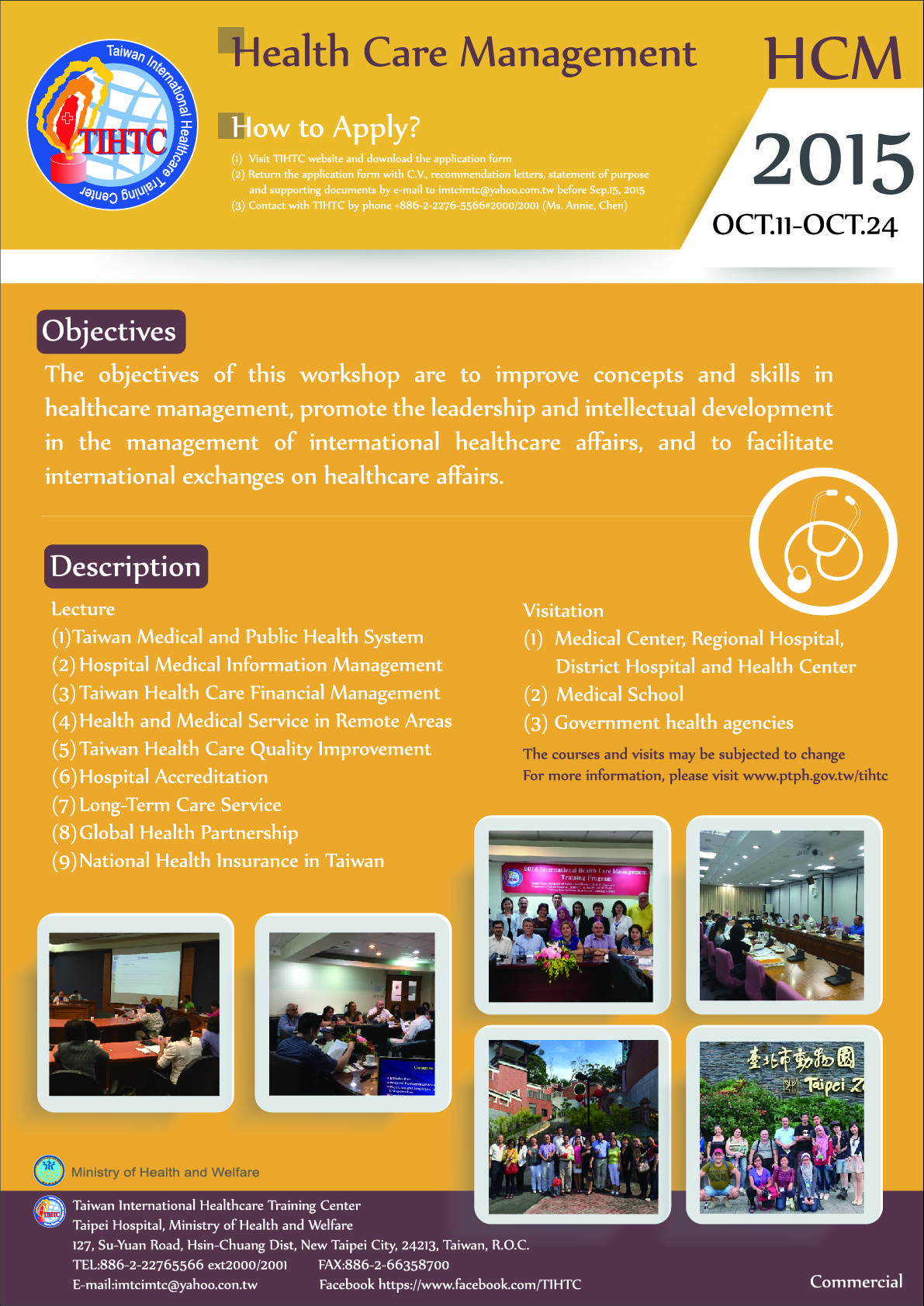 For who might has interesting to learn more, please www.ptph.gov.tw/tihtc and download the attachment. Return the application form with others documents before July 31, 2015