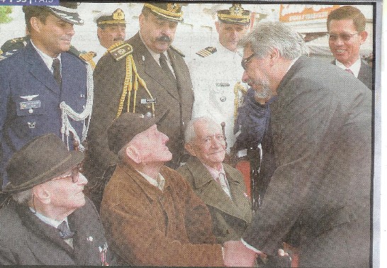 盧戈總統向參加寶蓋隆戰役英雄致意,右一為黃大使