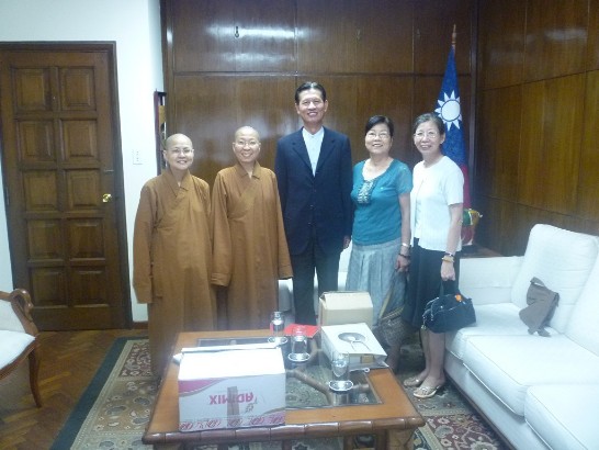 2011.01.11 黃大使與妙多法師(左二)及覺文法師(左一)等人合影。