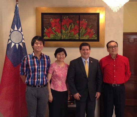 駐巴拉圭劉大使德立夫婦、公子與卡提斯總統合影
