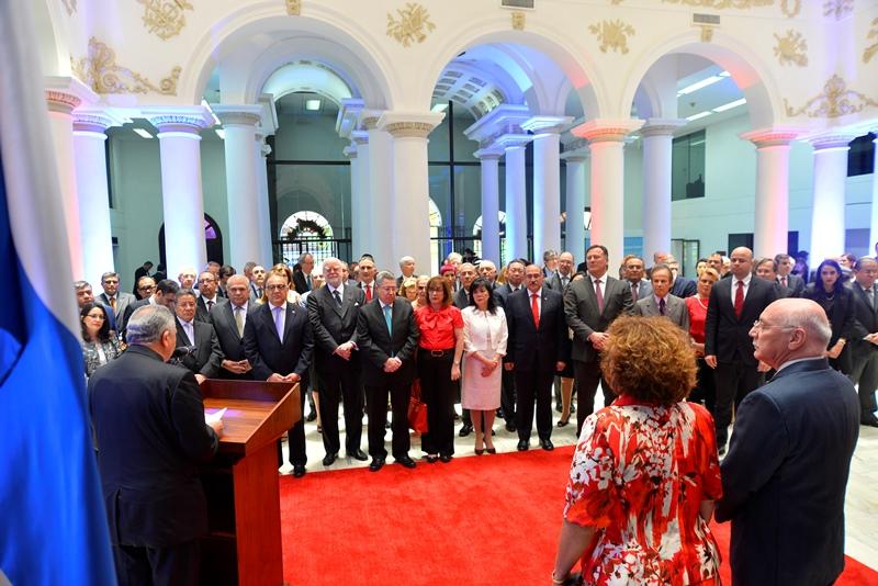 俞大使午出席外長羅依沙卡(Eladio Loiza)夫婦在外交部中庭舉行之歲末酒會。