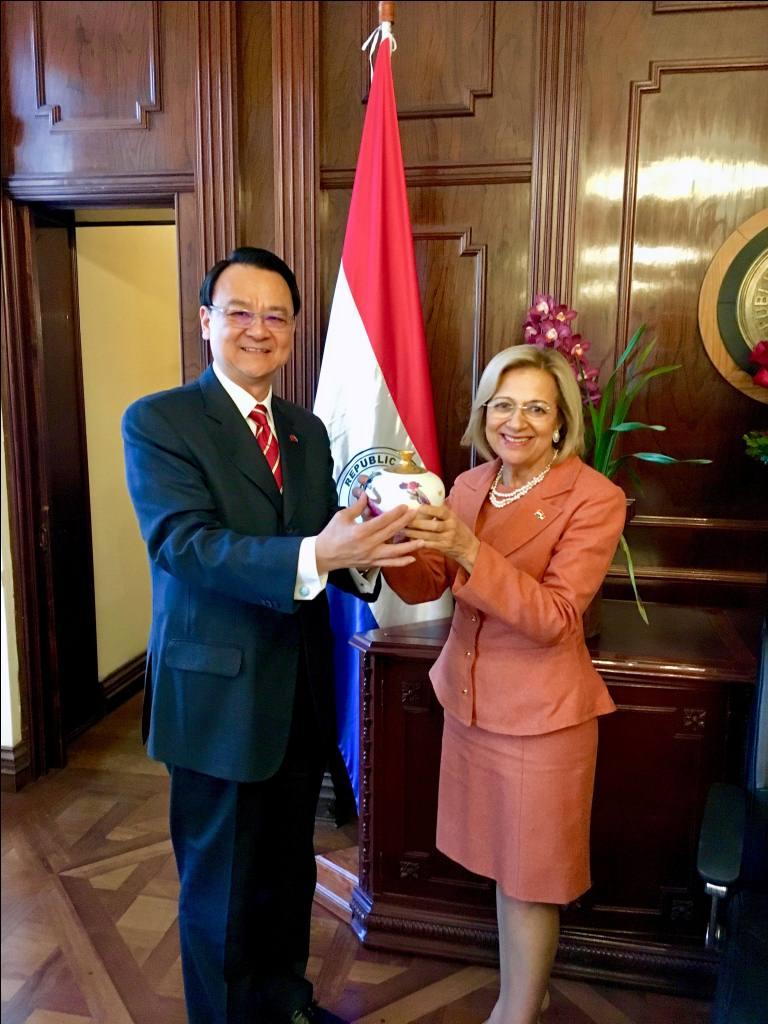 駐巴拉圭周大使麟拜會巴拉圭新任副總統布琪達(Alicia Beatriz Pucheta de Correa)事
