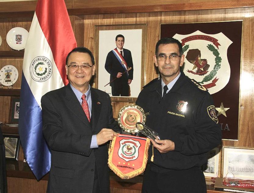 本館周大使麟於本(6)月14日上午偕李秘書妤玲拜會內政部警政署警察總監羅哈斯(Luis Rojas),雙方就兩國警政及安全事務合作充分交換意見。周大使首表示,本次來訪旨在增進雙方的瞭解與交流,期盼在既有之友好基礎上,賡續深化兩國警政領域的合作,並感謝該署長期以來對我政府及本館在資訊分享及安全維護工作方面的支持與配合。