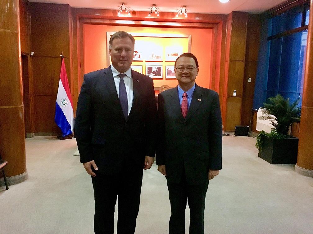 駐巴拉圭周大使麟本(6)月14日上午拜會巴國公共工程部長西梅內茲˙高歐納(Ramón Jiménez Gaona Arellano)。西梅內茲˙高歐納部長深受卡提斯(Horacio Cartes)總統信任,任期與現任政府相同,為巴國歷任公共工程部長任期最久者,任內除提升巴國公共工程案之數量5倍,更積極培育巴國及該部所需工程人才。