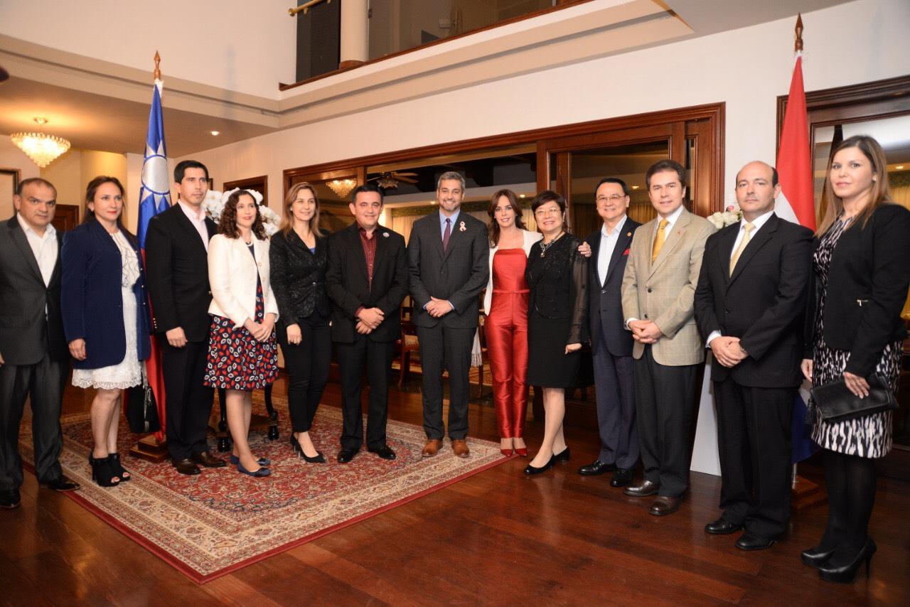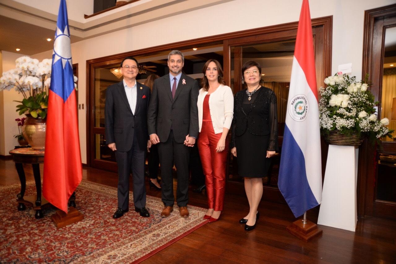 駐巴拉圭周麟大使夫婦於107年10月2日晚間在職務宿舍為即將赴臺進行國是訪問暨參加雙十國慶大典的巴拉圭總統阿布鐸(Mario Abdo Benítez)與第一夫人席凡娜(Silvana López Moreira)女士及訪團團員餞宴。阿布鐸總統伉儷將於10月5日啟程率團赴臺,駐館安排行前簡報,介紹此行訪台期間行程規劃。