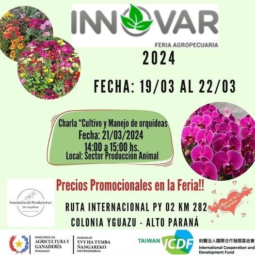 巴拉圭農牧部3月19日至22日在上巴拉納省伊瓜蘇市(Colonia Yguazu)舉辦創新博覽會(Expo INNOVAR),駐巴拉圭技術團蘭花計畫將展現所培植的各式美麗蘭花與觀賞類植物,並在3月21日14時至15時舉辦蘭花栽培與生產管理的講座。