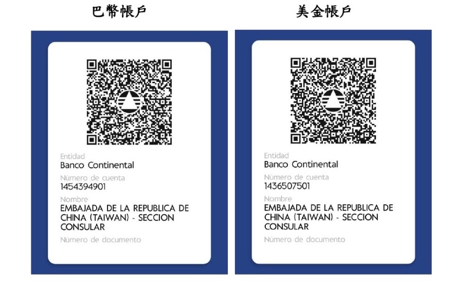 駐巴拉圭共和國大使館訂於本(2024)年10月14日(星期一)起開放民眾選擇現金或銀行轉帳方式繳納各項領事事務之規費,如選擇以銀行轉帳方式繳費,請參考以下銀行帳戶資訊: