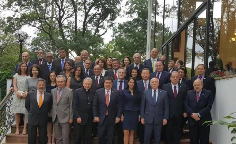 巴國卡提斯(Horacio Cartes)總統於昨(26)日上午於教廷駐巴拉圭大使館與駐地外交團眷、駐巴重要國際組織,舉行會談暨餐會,向駐巴使節闡述巴國內政情及重要關切議題,歷時3小時。