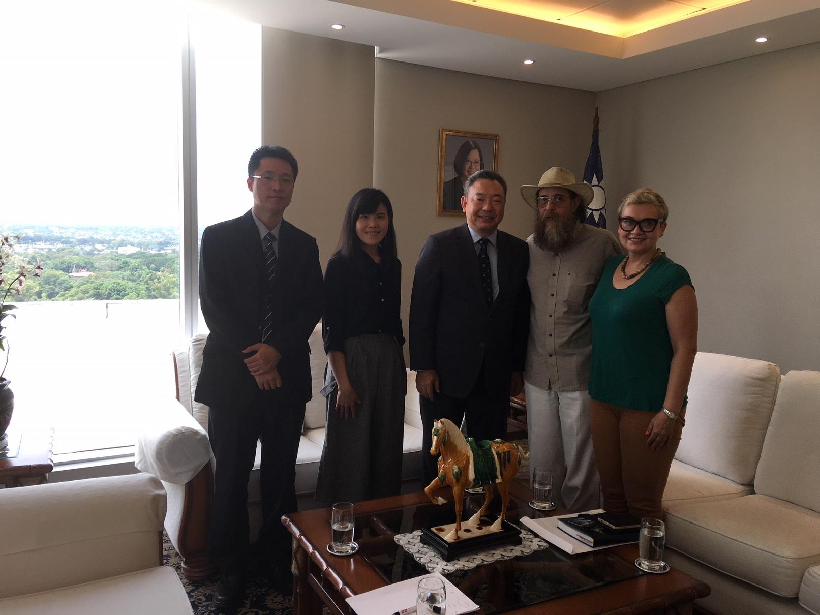 巴拉圭知名創作歌手兼音樂家Francisco Russo一行2人於本(2)月14日上午至我駐巴拉圭大使館拜會俞大使大㵢。雙方就推動臺巴兩國文化交流交換意見,俞大使並向R先生請教有關巴拉圭維護瓜拉尼語言及其傳統習俗之經驗。