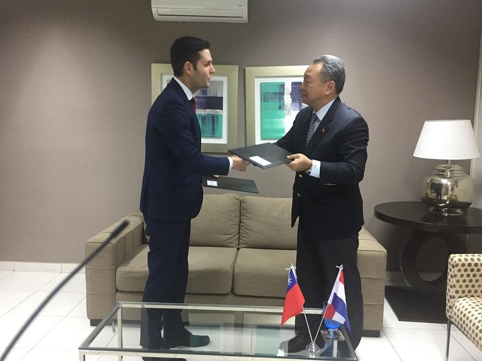 駐巴拉圭俞大使大㵢107年3月28日與巴國「第二電視臺」(Red Guaraní)總裁José María Manzoni分別代表雙方簽署播放我國優質電視偶像劇「親愛的,我愛上別人了」授權合約儀式,並交換約本,簡單隆重,氣氛融洽友好。