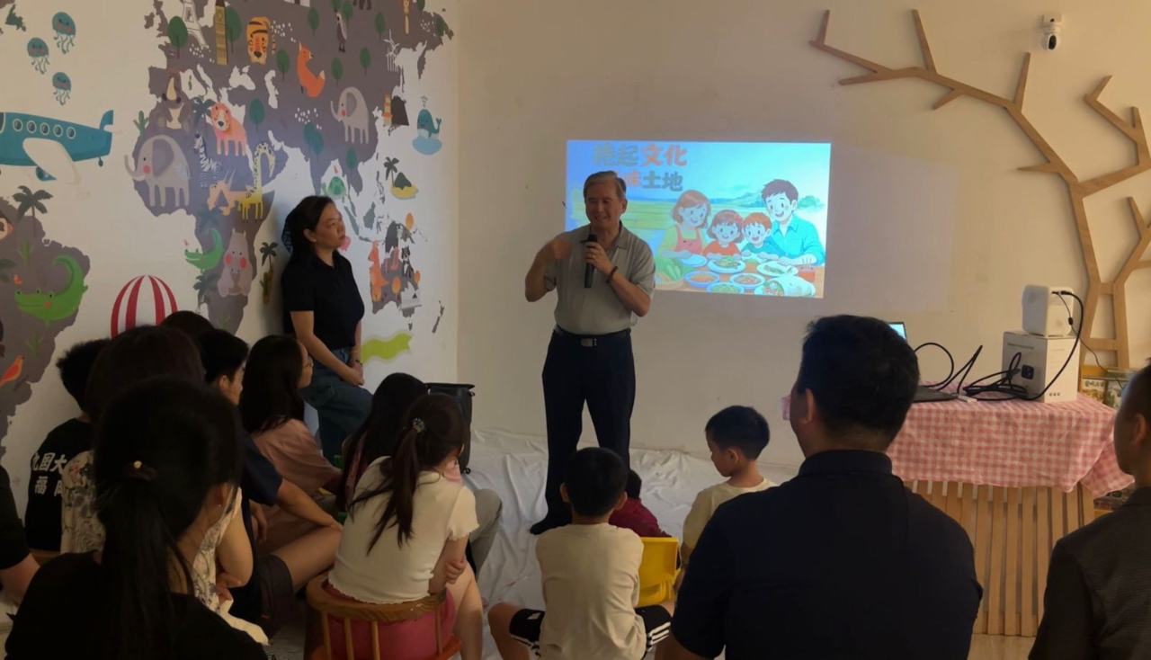 陳總領事出席台灣巴拉圭地方創生協會舉辦的「卷起文化,品味土地」食農教育親子工作坊,並向現場大朋友、小朋友介紹清明節的由來。