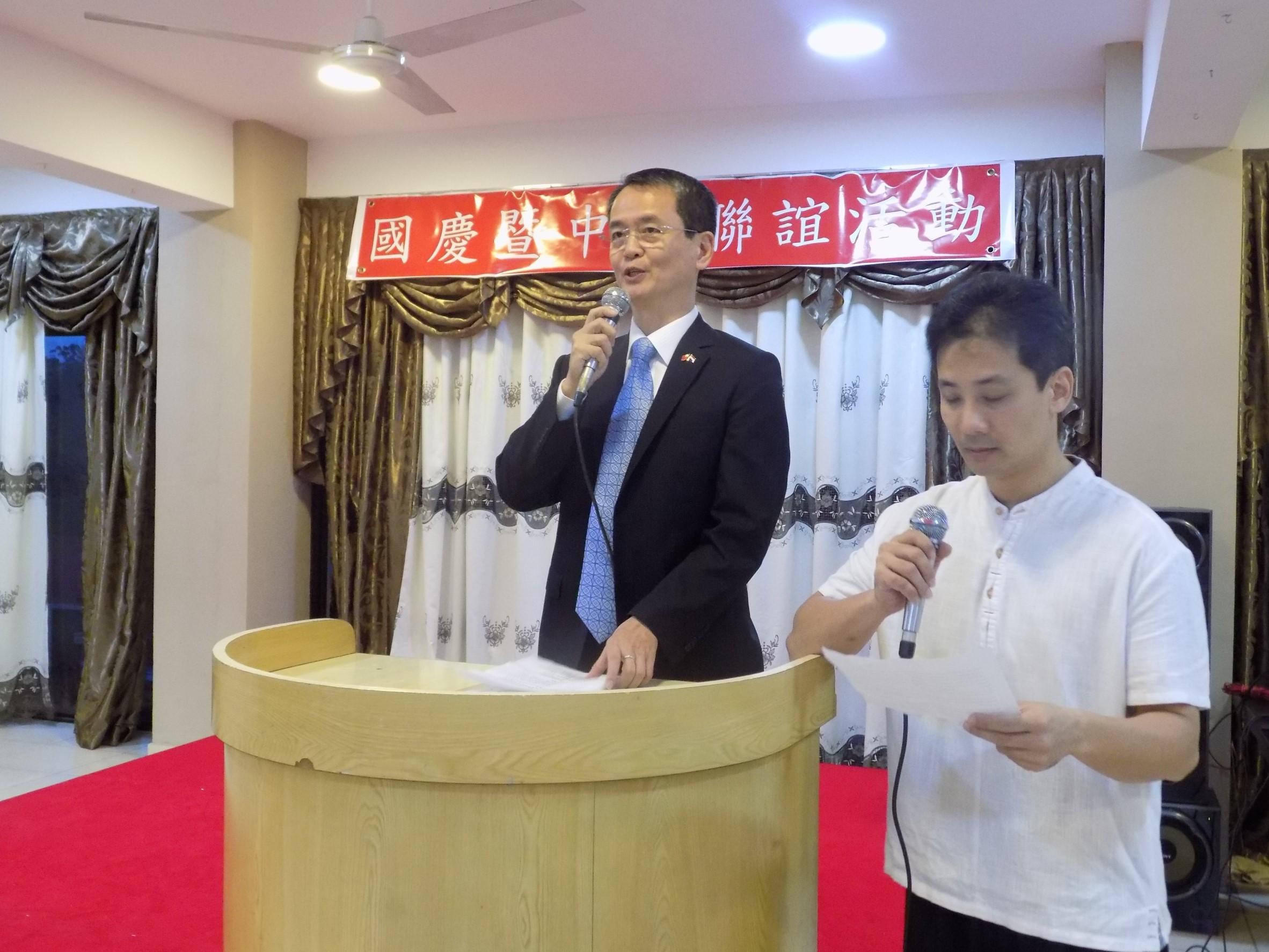 陳總領事致詞時除向該會甫成立二個月餘即主動籌備辦理慶祝本年國慶與中秋晚會申謝外,大力推崇在巴拉圭伊省辛苦奮鬥的所有僑胞,為台巴建交60年邦誼所做貢獻;另特別代表中華民國政府和人民,向前省長Gneiting閣下及Vergara現任省長過去給予我國旅居該省僑民最大的支持和照顧表達謝意,更請在未來繼續支持和照顧。