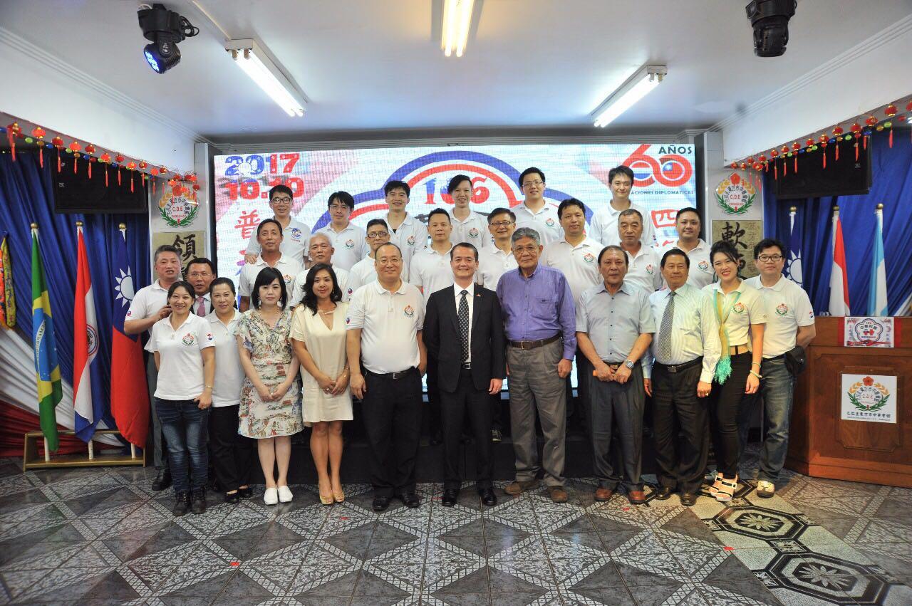 巴拉圭東方市中華會館為慶祝中華民國建國一○六年國慶,特於10月7日晚間在該會館舉辦全僑慶祝國慶晚會,晚會由該會館尤理事長南巖主持,駐巴拉圭東方市陳總領事昆甫、魏副總領事世鉅、陳僑務委員傳庚、顧僑務諮詢委員丹塵、其他僑務榮譽職、僑團負責人及會館眷屬近二百人參與,另有多位巴國當地政要友人應邀出席。